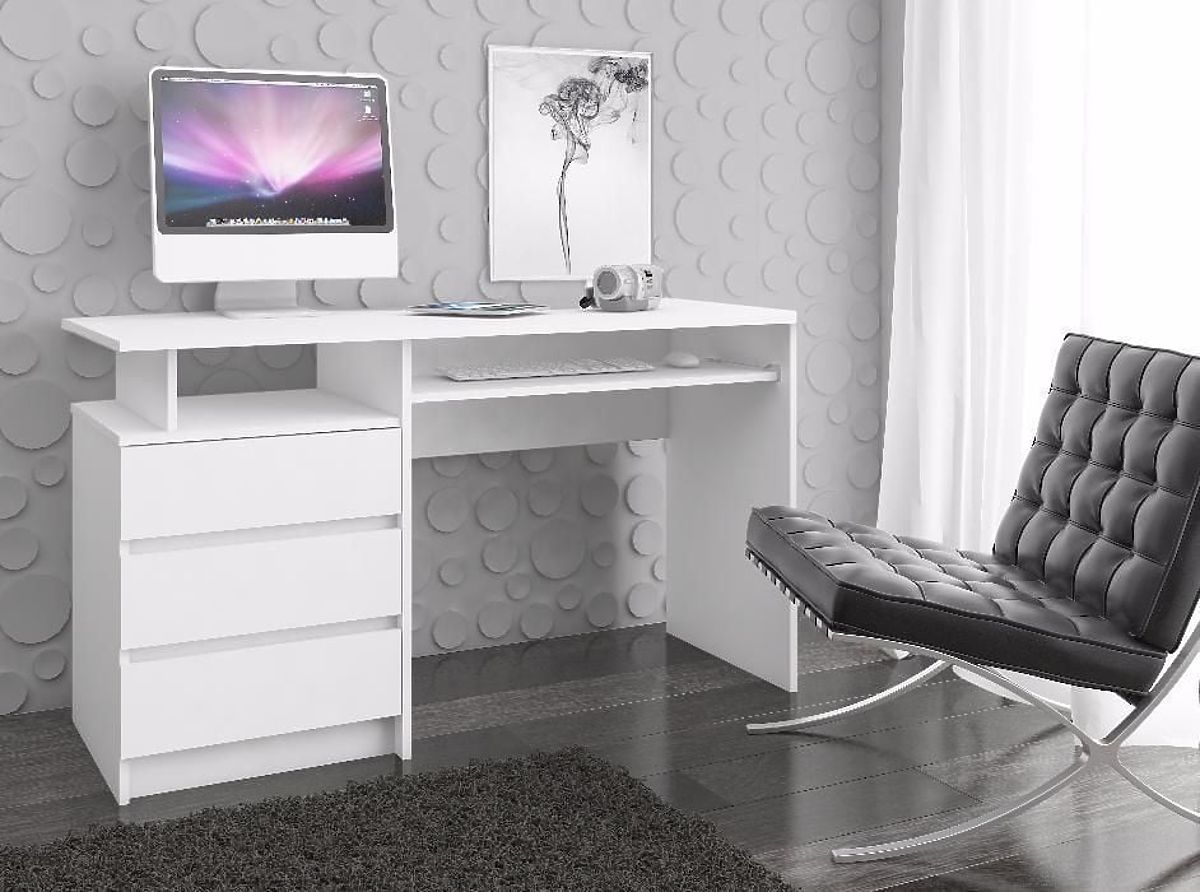 A fehér, szabadon álló asztal modern tervezésű bútor, amely tökéletesen illeszkedik a mai berendezési szabványokhoz. Egyszerűségével és eleganciájával tűnik ki, divatos fehér színben. Az asztal három tágas fiókot, egy nyitott polcot, egy kihúzható billentyűzettartót és egy széles (135 centiméteres) asztallapot tartalmaz. A szabadon álló CLP asztal kiválóan alkalmas irodába vagy otthoni dolgozószobába egyaránt. Ez az ajánlat biztosan megfelel azok elvárásainak, akik számára a munkafelület a legfontosabb. Mélysége akár 60 centiméter is lehet, ami kényelmes számítógép- és egyéb irodai eszközhasználatot tesz lehetővé. A termék népszerű játékasztalként is, ahol a tér és a felhasználó kényelme hosszú játék során nagyon fontos.