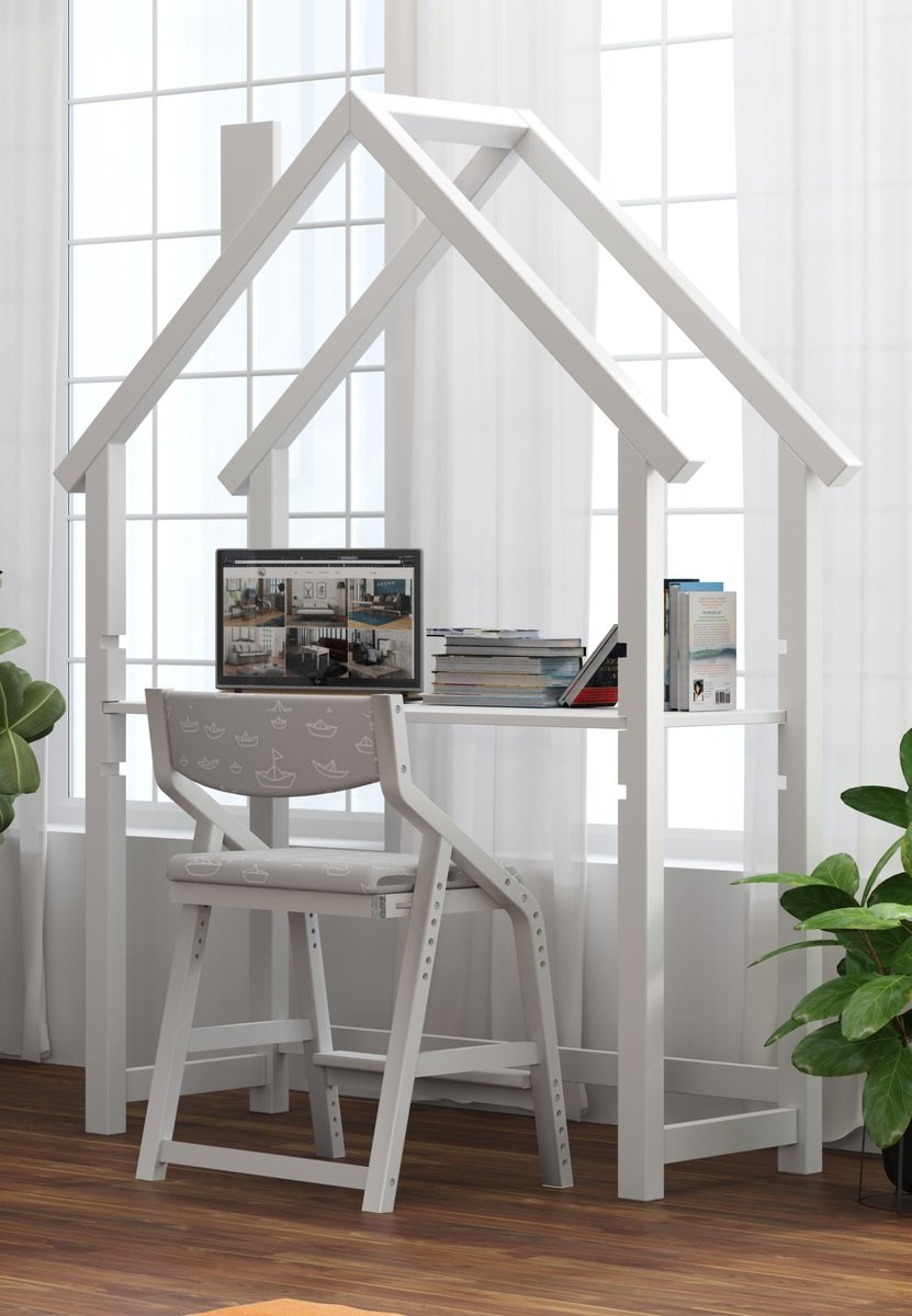 A fehér FRANK íróasztal házikó formában stílusos és praktikus asztal. .. többet