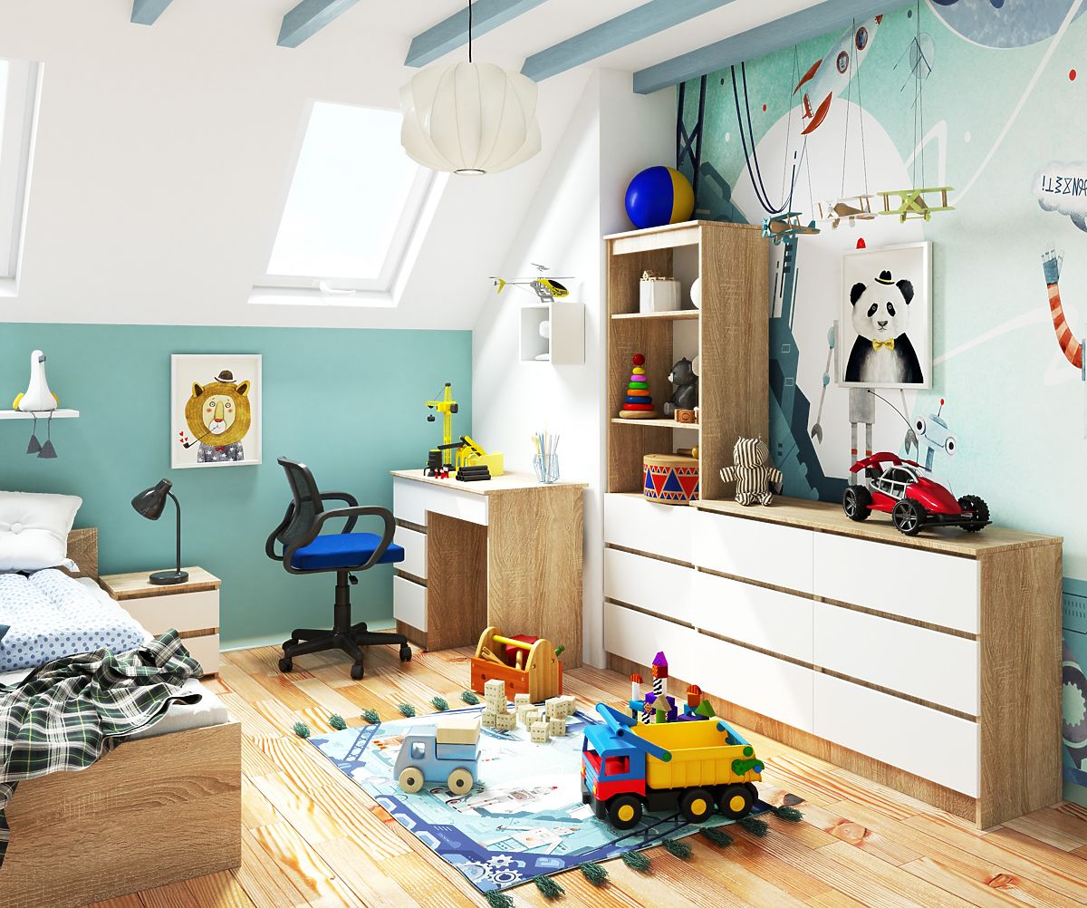 Balos számítógépasztal sonoma tölgy színben fehér előlappal és négy tágas fiókkal. Kiválóan alkalmas gyerekszobába, diákszobába, de akár irodába vagy dolgozószobába is. Az asztal a CLP bútorrendszer része, úgy tervezték, hogy illeszkedjen a sorozat többi bútorához. Ennek köszönhetően különféle bútorokkal, mint például polcokkal vagy komódokkal rendezheti be a szobát, amelyek formailag és színben is harmonizálnak. Modern dizájnnal rendelkezik, a fogantyú nélküli fiókok minimalista bájt kölcsönöznek a bútornak. Négy fiókjának köszönhetően rengeteg tárolóhelyet kínál. Klasszikus megjelenése miatt az asztal univerzális jellegű, és sosem megy ki a divatból. Az asztal kialakítása kényelmes és ergonomikus számítógép-használatot tesz lehetővé.