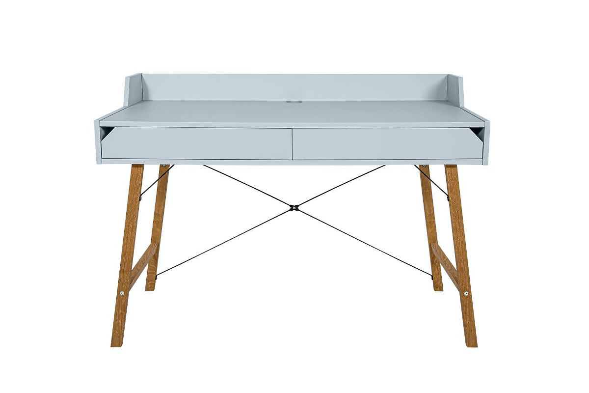 Egy íróasztal a részletekre és a minimalista dizájnra helyezve a hangsúlyt. Két tágas fiókkal, munkafelület-szegéllyel és kábellyukkal rendelkezik, hogy a munkafelületet rendben és rendezetten tartsa.