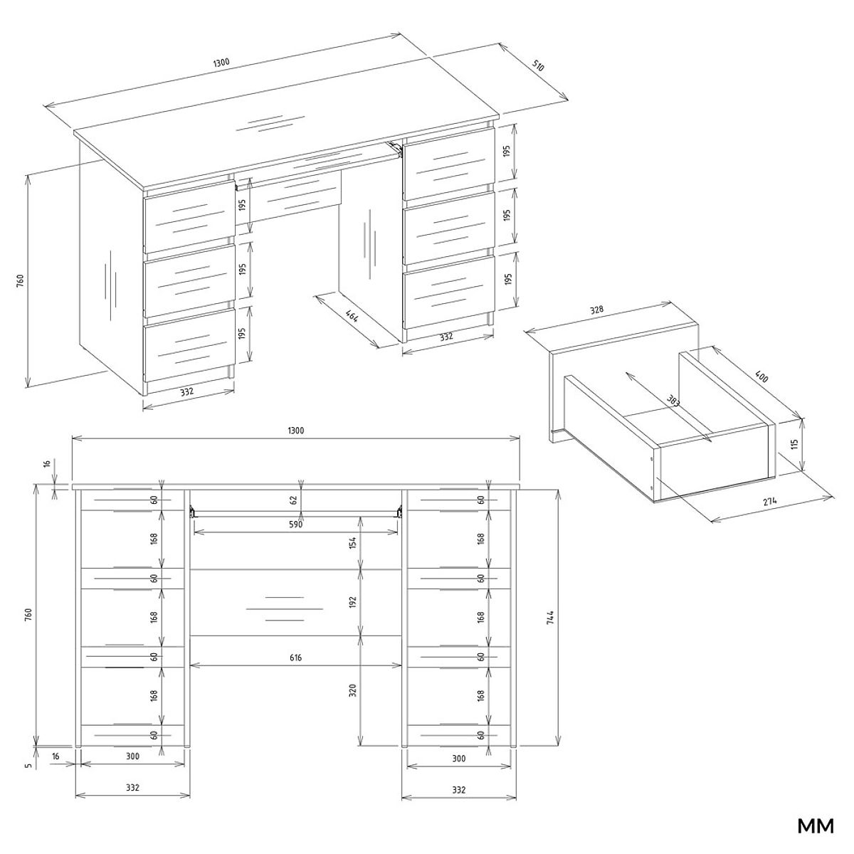 Teljes magasság felépítménnyel: 146 cm (íróasztal: 76 cm + felépítmény: 70 cm)