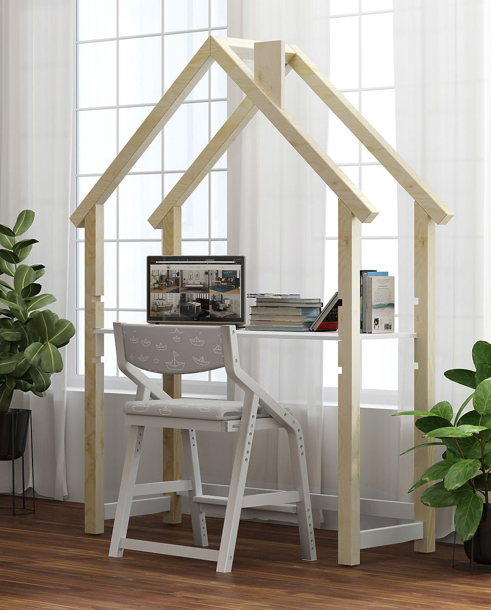 A fehér és természetes FRANK ház alakú íróasztal stílusos és praktikus íróasztal az első házi feladathoz. Lányoknak és fiúknak tetszeni fog. A munkalap 3 .. többet