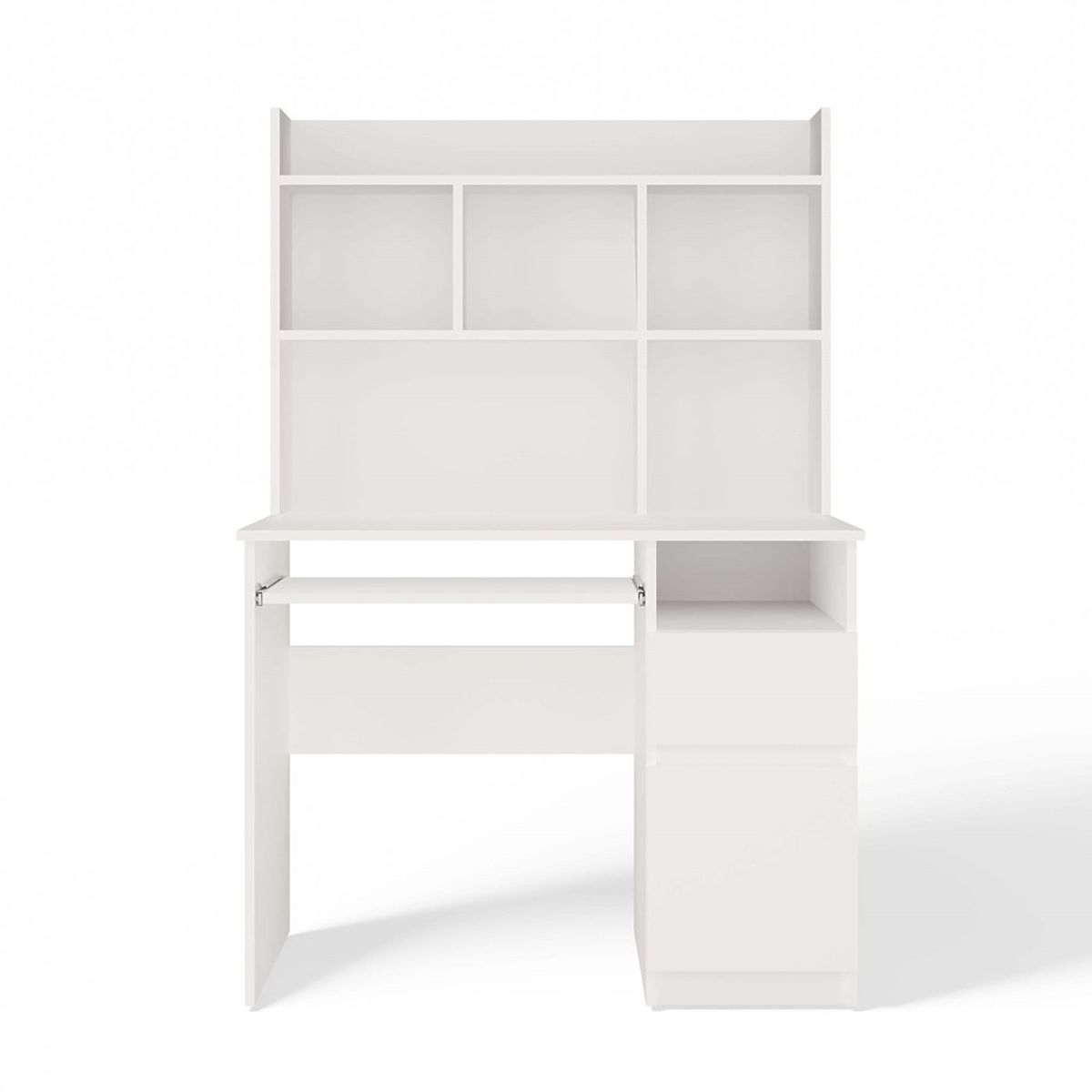 A modern dizájn, a matt fehér szín és a praktikus tárolóhely elrendezése ezt a bútort ideálissá teszi mind ifjúsági és gyerekszobába, mind otthoni irodába.