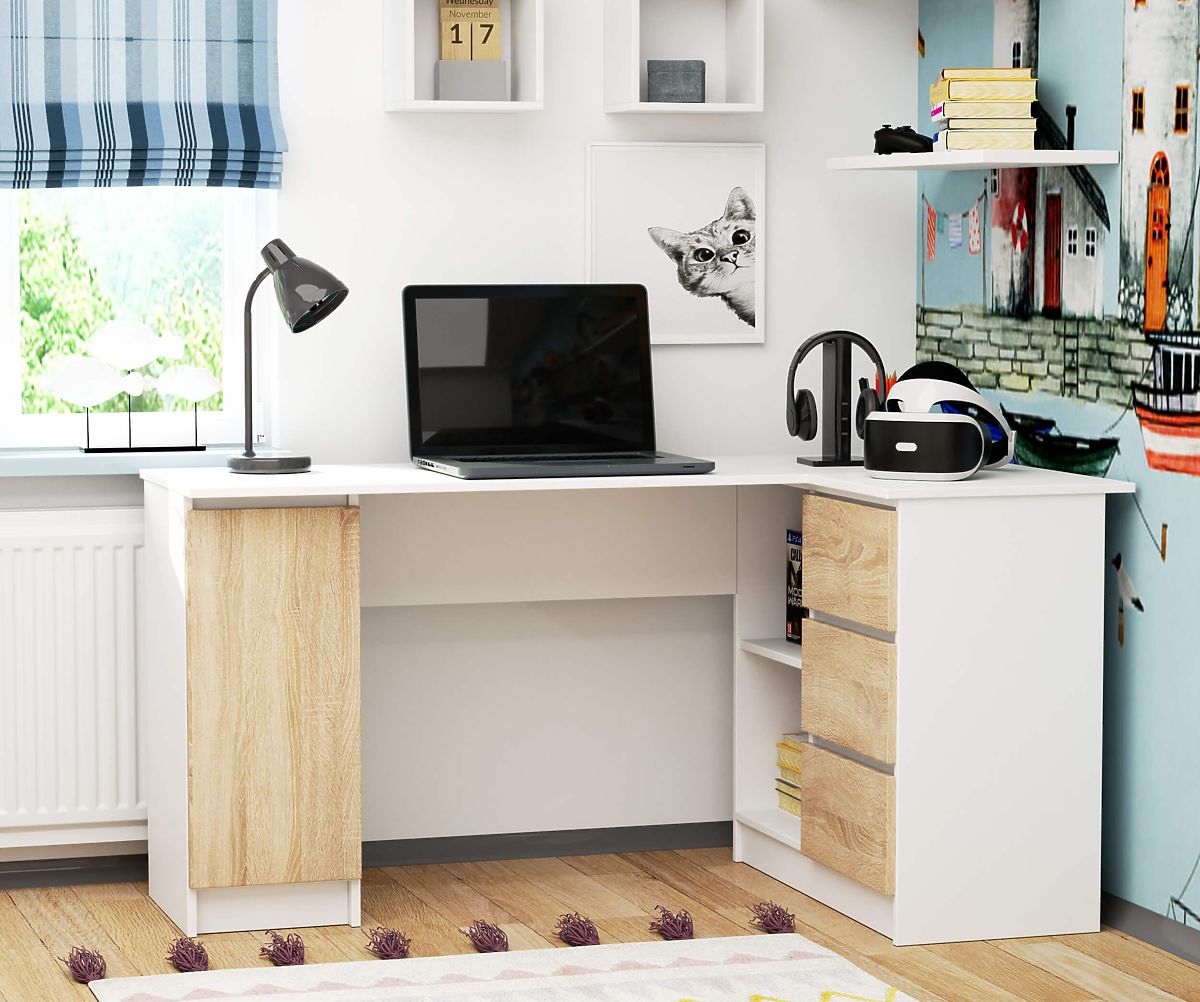 Banaby.hu » Gyerekbútor / Gyerek asztalok / Gyerek íróasztalok / SAROK ÍRÓASZTAL B20 CLP JOBBOS PK FEHÉR / SONOMA