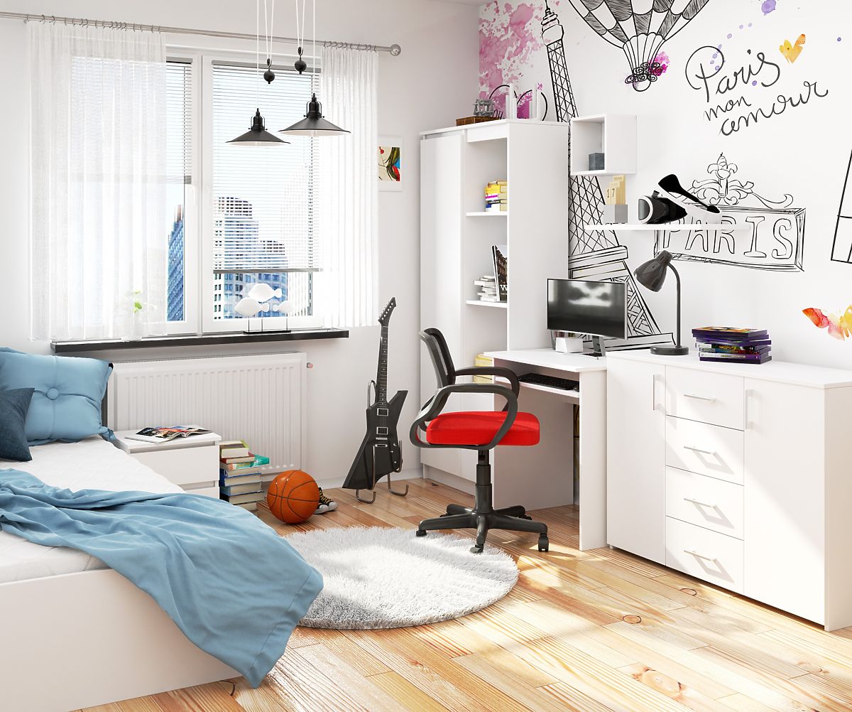 A kis fehér, szabadon álló STAR íróasztal elsősorban gyerek- és diákszobákba készült.
