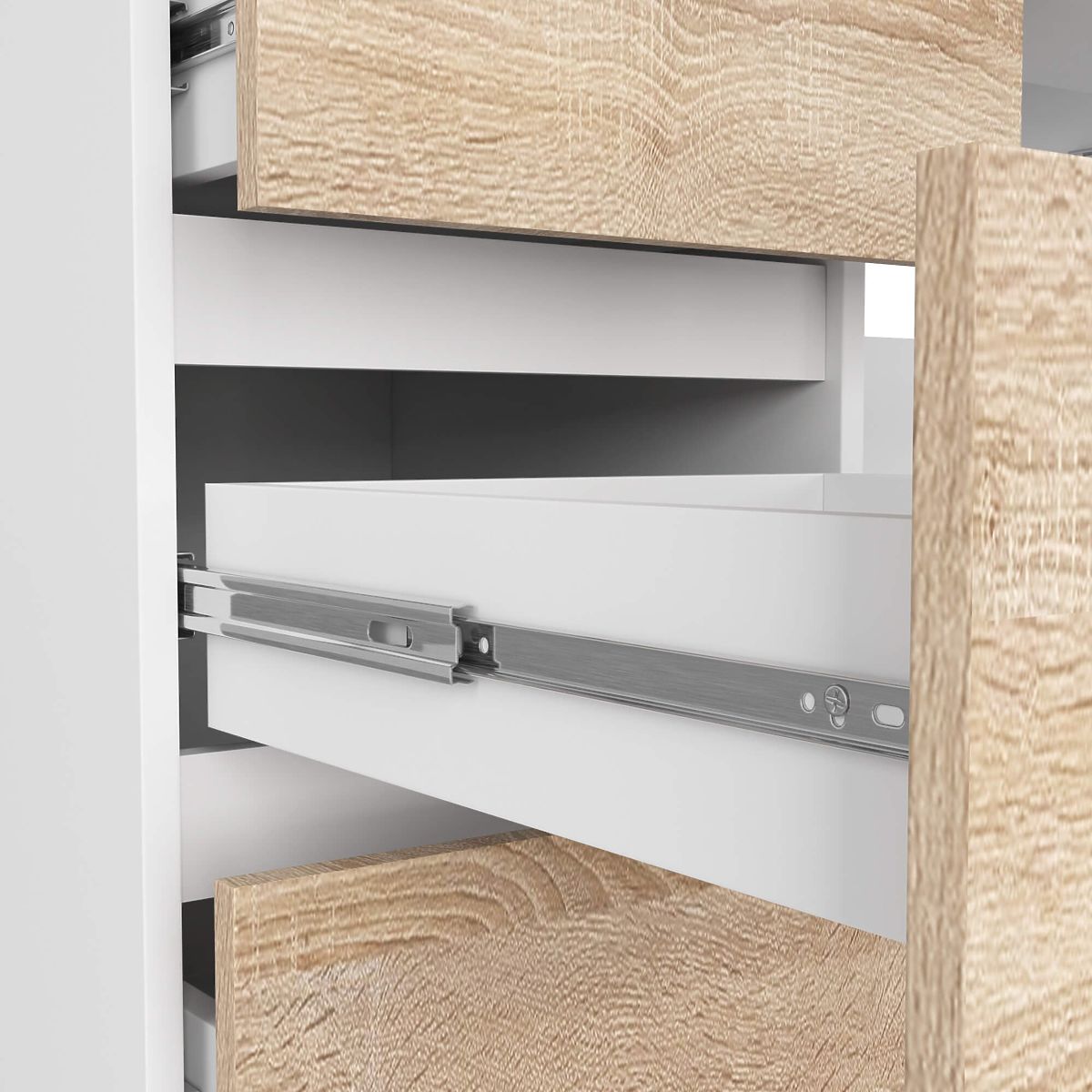 A fehér színű, sonoma árnyalatú előlappal rendelkező A-11 135 cm-es számítógépasztal funkcionális, praktikus és ergonomikus bútor, amely 6 nagyon praktikus, hasznos és tágas fiókkal van felszerelve. Ez lehetővé teszi a tér jobb szervezését a dolgok rendezett tárolásával, amelyek például hasznosak lehetnek gyermekeink számára tanulás vagy házi feladat írása közben. Végül emlékeznünk kell arra, hogy gyermekeink az iskolai kötelezettségek teljesítése során egyre gyakrabban használják a technológia előnyeit, például a számítógépet és az internetet.