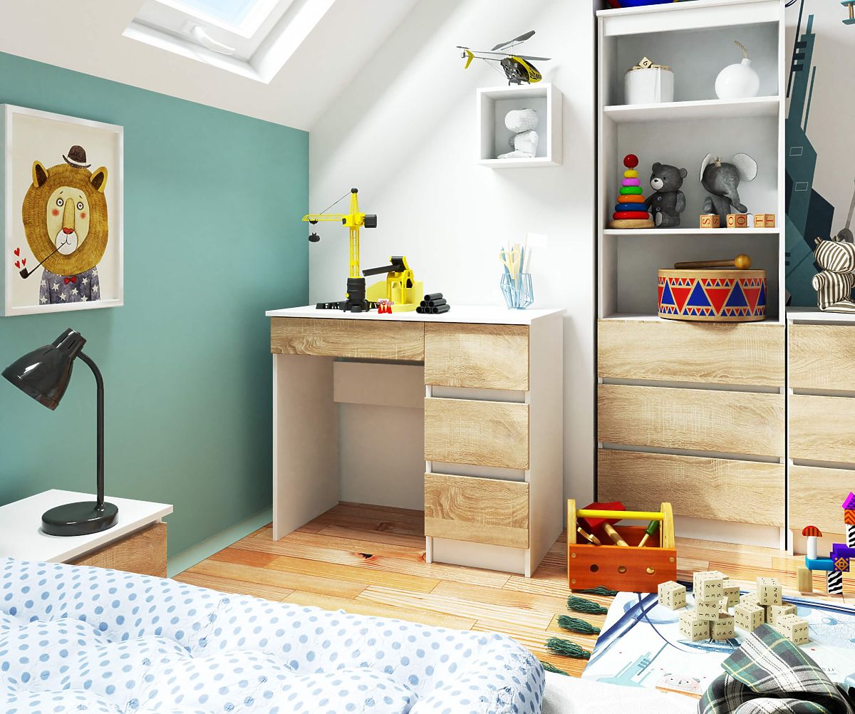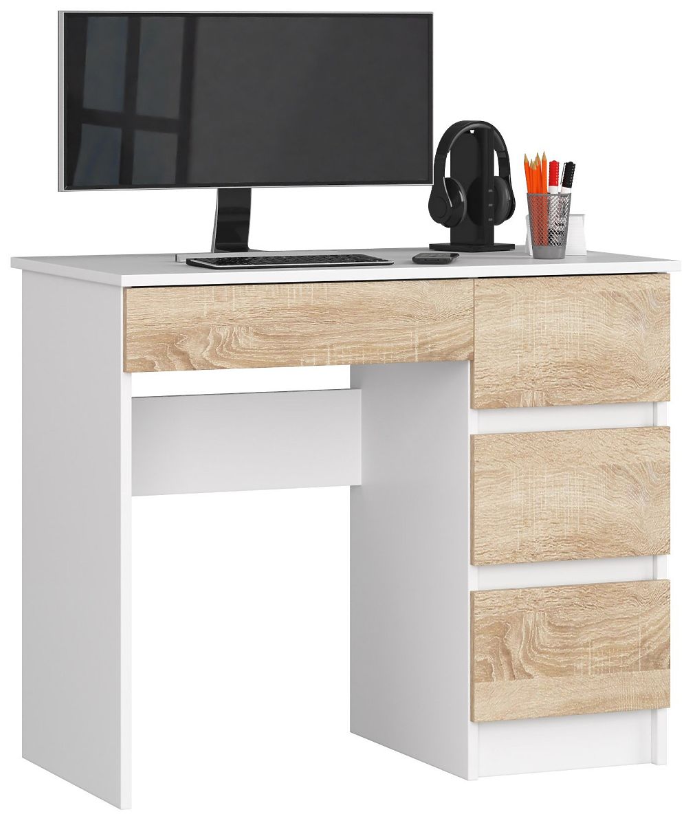 Banaby.hu » Gyerekbútor / Gyerek asztalok / Gyerek íróasztalok / SZÁMÍTÓGÉPASZTAL A-7 90 cm JOBB PK FEHÉR / SONOMA