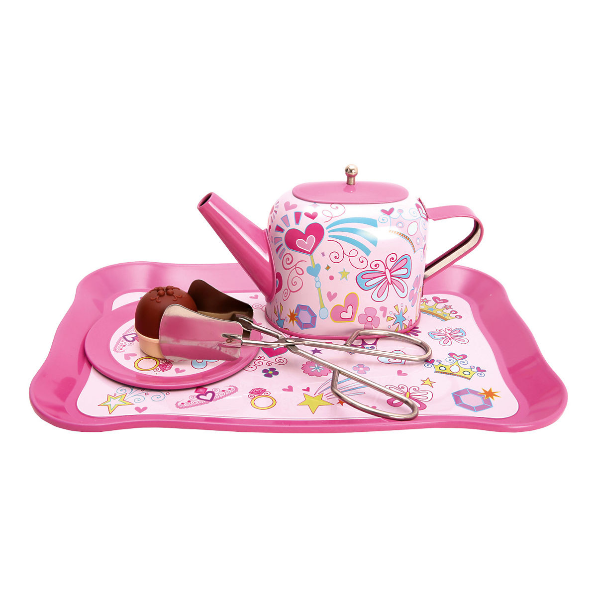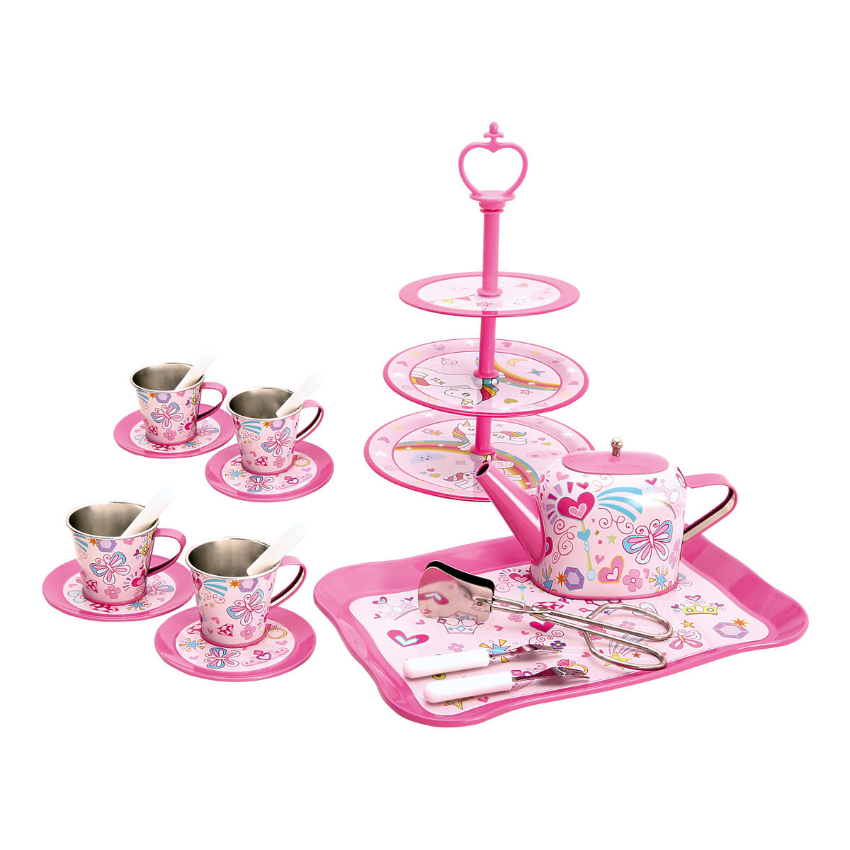 Varázslatos teázási idő a szülőknek, babáknak és plüss barátoknak! A gazdag teáskészlettel a gyerekek fejleszthetik fantáziájukat, valamint szociális és kommunikációs készségeiket. A készlet részletesen dekorált, tartós könnyű fémből és ártalmatlan műanyagból készült. Főbb jellemzők: 4 személyes készlet, összesen 35 darab, tartós kivitel