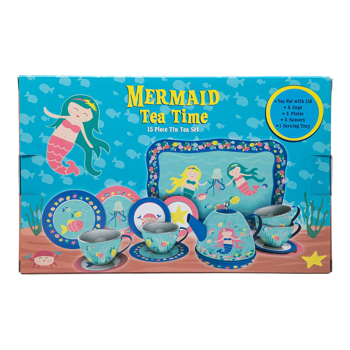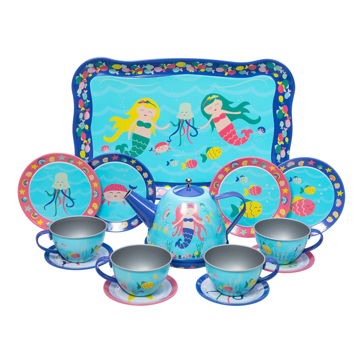 Itt az ideje a teázásnak. Ez a gyönyörű, 15 darabos teáskészlet fémből készült, és tartalmaz 4 csészét csészealjjal, 4 desszerttányért, egy teáskannát fedővel és egy tálcát, mindezt sellőmintával. A kreativitás szárnyal, amikor gyermekeid barátokat, babákat és plüssjátékokat látnak vendégül ezzel a gyönyörű teáskészlettel. Alkalmas kis házigazdáknak és háziasszonyoknak 3 éves kortól. Főbb jellemzők: 15 darabos teáskészlet, ideális szerepjátékos teázásokhoz, sellőmintás design