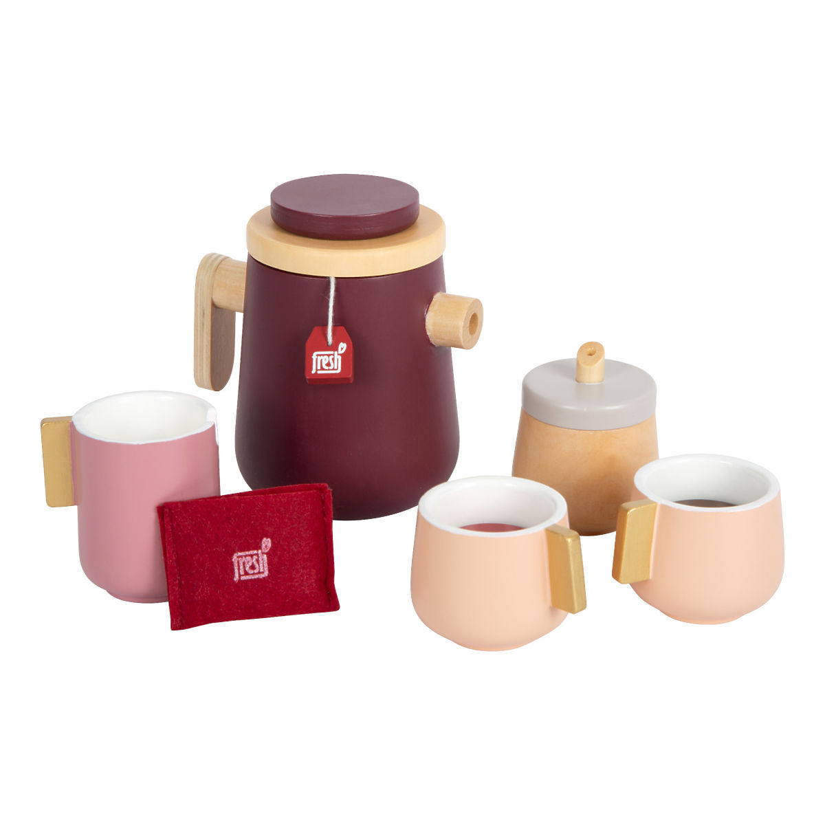 Skandináv design a gyermekeid konyhájában. A modern teás vagy kávés készlet két személyre tartalmaz csészéket, tányérokat, kanalakat, cukortartót, tejeskannát, kancsót, sok ételt (nem valódi), mint például tejszínhabot, teafiltert és muffint. Az integrált mágnes segít a képzeletbeli játékban, az édességek elférnek a desszerttányéron. A gyerekkonyha robusztus kiegészítői egyszerű formákkal, lekerekített élekkel és modern színekkel rendelkeznek, mint a füstkék, mélyvörös és áfonya. A csészék és a tejeskanna fülei aranyszínűek. A játék sok látható fából készült, az áfonya és a tejszínhab a muffinokon mágnesekkel rögzíthető, és az italokba is belekeverhetők. A tejeskanna és a cukortartó fedele levehető. Kompatibilis a „Tasty” sorozat többi termékével. Főbb jellemzők: teás és kávés készlet nem csak gyerekkonyhákba, robusztus fából készült, a csomagban csészék, tányérok, kanalak, cukortartó, tejeskanna, kancsó, harapnivalók, desszerttányér, egyszerű formák, lekerekített élek, modern színek, arany részletek és sok látható fa, a tejszínhab és az áfonya mágnessel rögzíthető, kompatibilis a „Tasty” sorozat többi termékével, fejleszti a szociális készségeket.