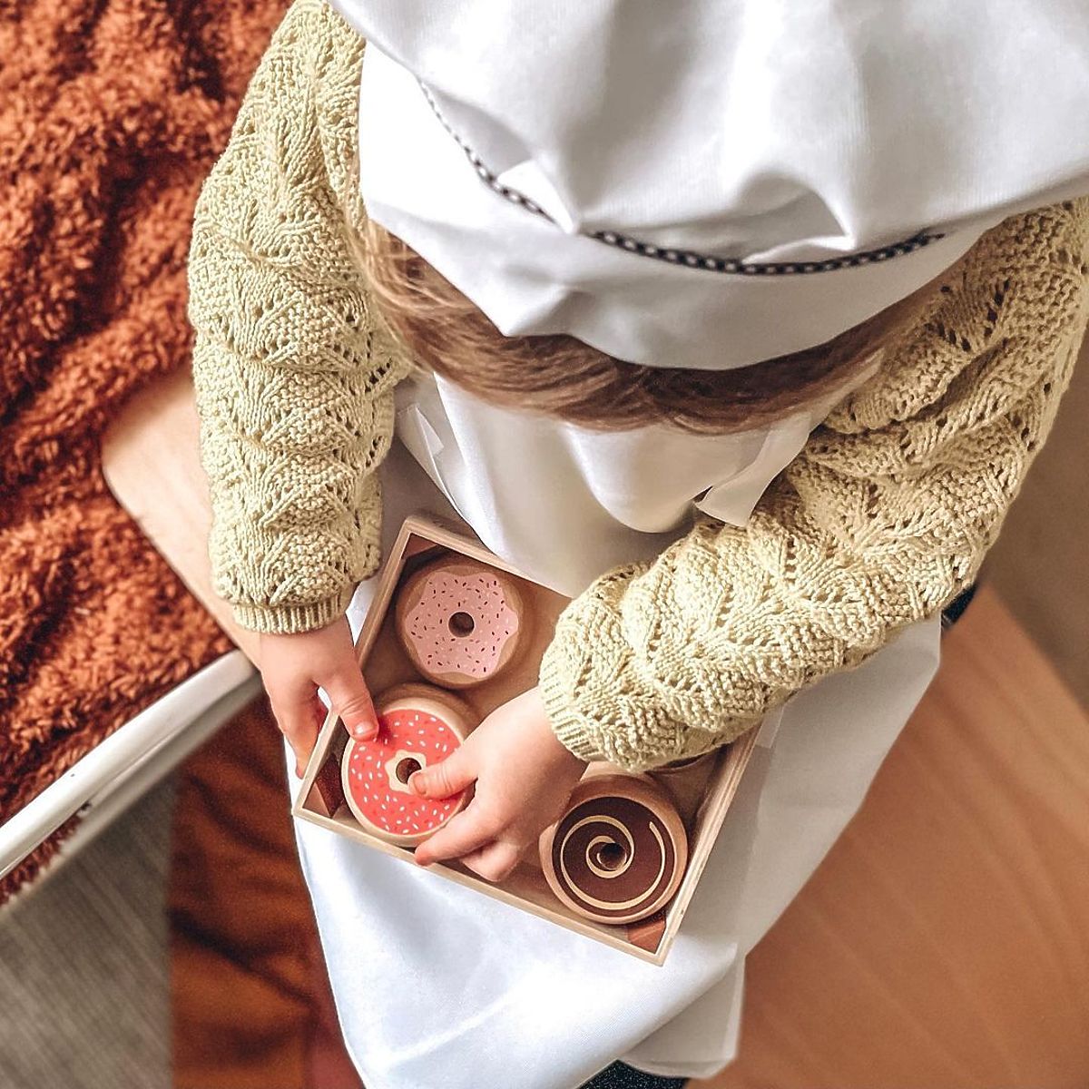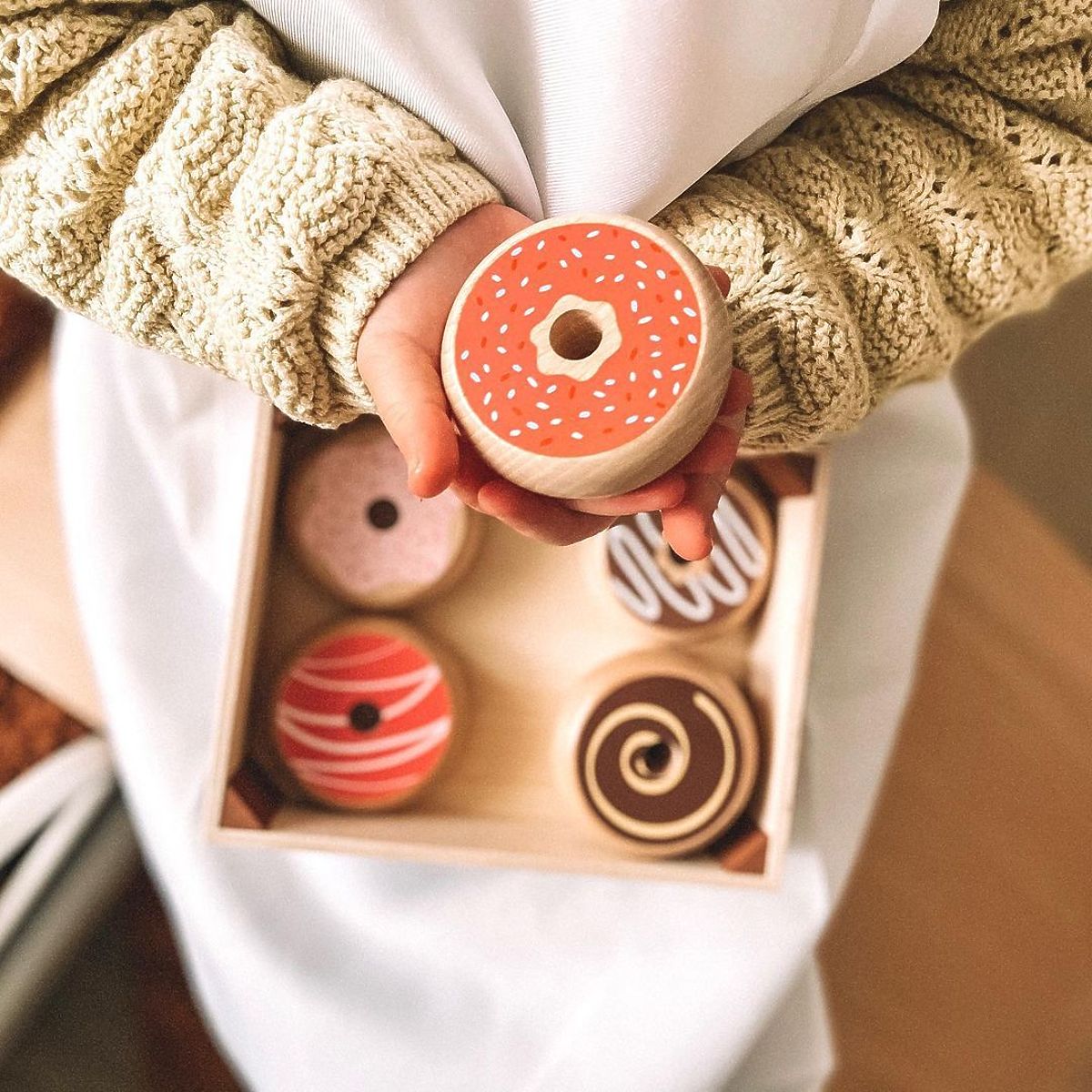 Fa doboz fánkokkal, amelyek valósághűek és nagyon ínycsiklandóak. Meg lehet őket enni egyedül vagy megosztani másokkal! Kiváló játék, amely megismerteti a gyerekeket a választás lehetőségével és a megosztással. Tökéletes játék teapartikhoz vagy piknikekhez. Támogatja a gyerekek kreativitását és szerepjátékát. Kiváló minőségű, felelősségteljes forrásokból származó anyagokból készült. Megfelel az európai biztonsági előírásoknak. Főbb jellemzők: doboz (fedél nélkül) és 6 fánk, tartós kivitel, fenntarthatóságra törekvő gyártás.