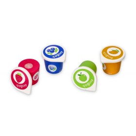 A kis szakácsok imádni fogják ezeket a színes joghurtokat, mellyekkel játszhatnak a kis konyhájukban. Ezen kívül a joghurtokat ki is tudja nyitni, mert a fedél tépőzáras.