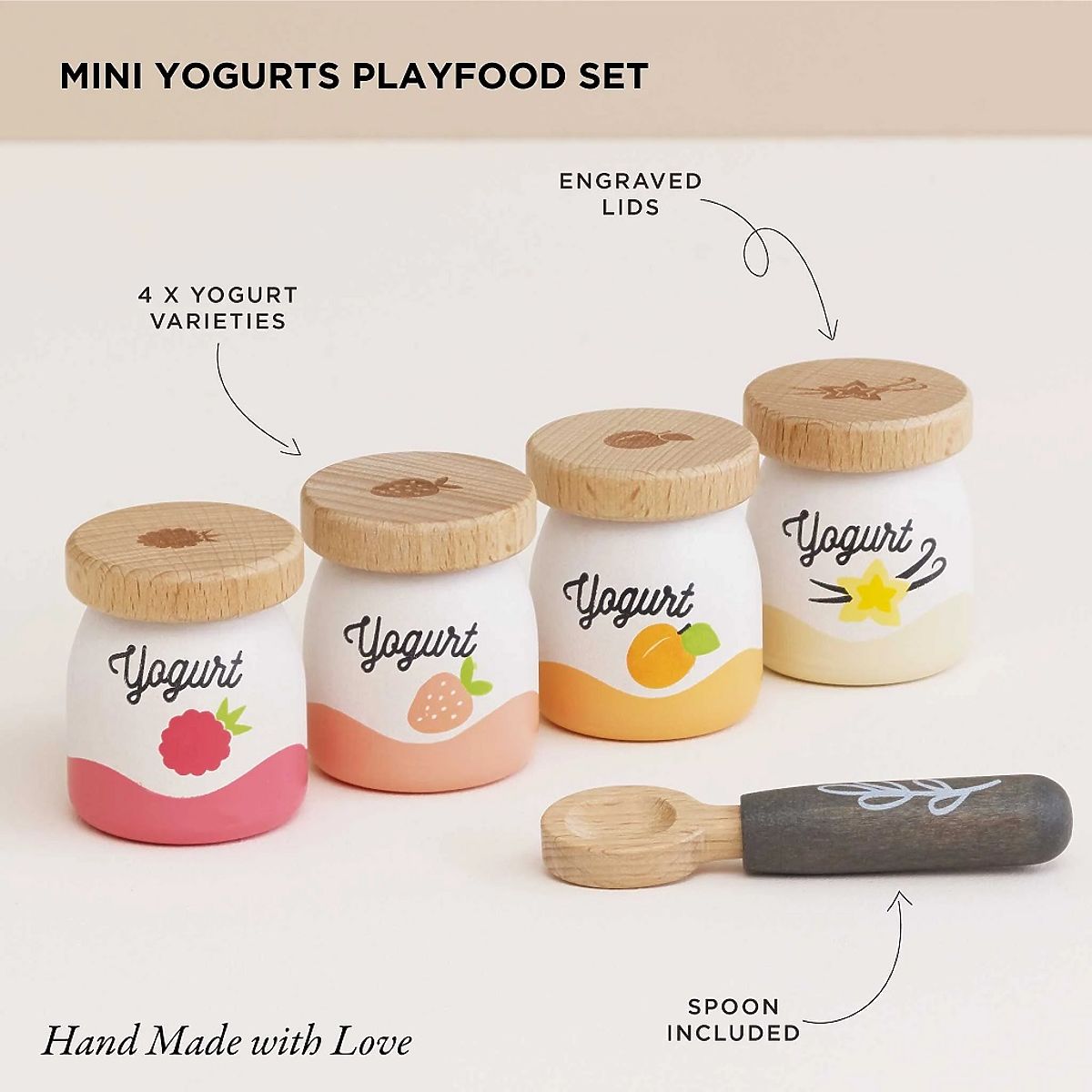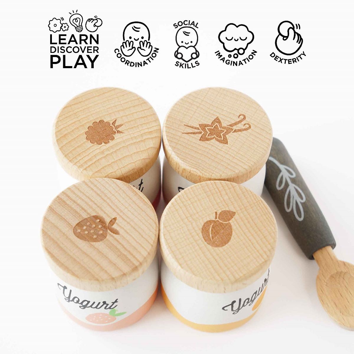 Fa játékételek készlete négy ízesített joghurttal és egy kanállal. .. többet