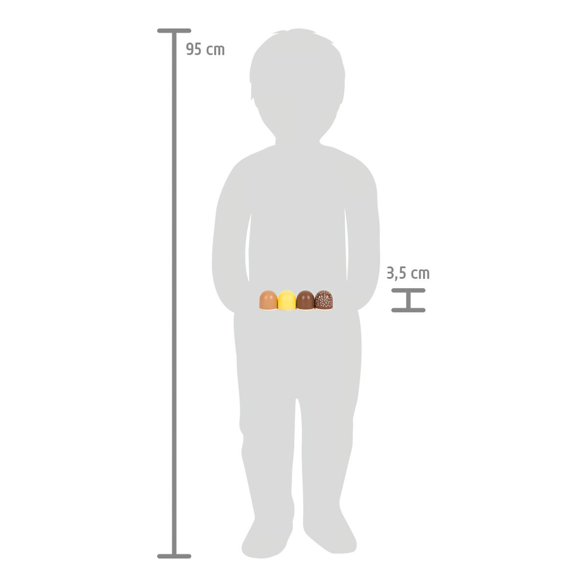 Kis édesszájúaknak! Ez a négy édes praliné marshmallow-val a belsejében fából készült, és tökéletesen illik a gyerekek eladópultjaihoz és konyháihoz. A csomag .. többet