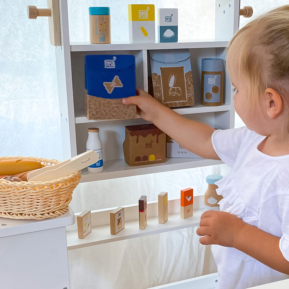 Kis édesszájúaknak! Ez a négy édes praliné marshmallow-val a belsejében fából készült, és tökéletesen illik a gyerekek eladópultjaihoz és konyháihoz. A csomag négy változatot tartalmaz: fehér csokoládé, étcsokoládé, étcsokoládé szórással és tejcsokoládé. Természetes megjelenésük éppúgy lenyűgözi a gyerekeket, mint az öko karton csomagolásuk. A marshmallow-val töltött pralinék úgy néznek ki, mint az igaziak, és a gyerekek számára hasznosak lesznek a képzeletbeli játékok során, mint például az üzlet, piknik, csokoládégyár... A "Fresh" sorozat többi termékével kombinálva valódi szórakozást nyújtanak. Főbb jellemzők: négy csokoládé praliné fából, fehér csokoládé, étcsokoládé, étcsokoládé szórással, tejcsokoládé, valósághű design a képzeletbeli játékhoz, kezelhetetlen karton, amelyből a pralinék könnyen kivehetők, kompatibilis a "Fresh" sorozat többi termékével.