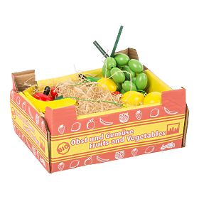 Minden kistermelő és eladó csak a legfrissebb és leglédúbb gyümölcsöt szeretné kínálni! A masszív és részletesen díszített kartondoboz papírszalmával van bélelve, és gazdag színű gyümölcsmakettekkel van tele. Használható önállóan, vagy konyhai, bolti vagy állvány kiegészítéseként. Főbb jellemzők: kartondoboz 11 fából készült gyümölcsmaketttel, konyha, üzlet vagy állvány kiegészítőjeként