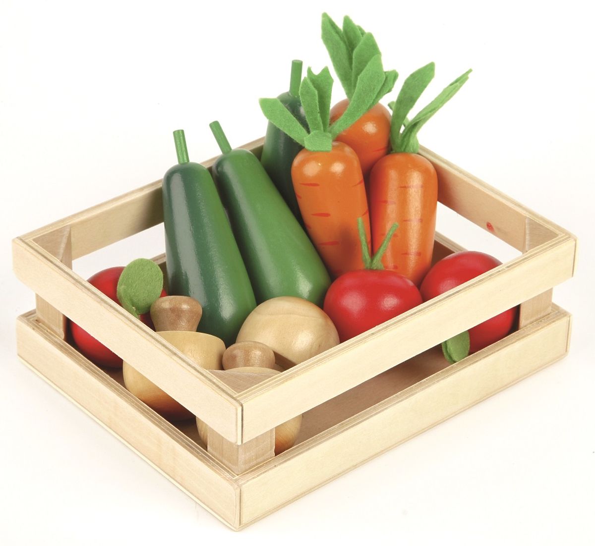 Ez a gyönyörű fa zöldségkészlet mindent tartalmaz, amire a kezdő fiatal szakácsoknak szükségük van egy egészséges étel elkészítéséhez. A készlet gombákat, répákat, cukkinit és paradicsomot tartalmaz. A zöldségek praktikus fa ládában érkeznek, és kompatibilisek a Tidlo bolttal és színházzal. Minden részletében autentikus. Ez a játékkészlet ideális minden kezdő fiatal szakács vagy kereskedő számára. A gyerekek megtanulhatják és felismerhetik az általuk fogyasztott ételek nevét. Remek módja annak, hogy megtanítsuk a kicsiket az egészséges és kiegyensúlyozott étrend fontosságára, honnan származik az ételünk, és hogyan készítjük el az ételeket. Kiváló módja az interaktív és kreatív szerepjáték ösztönzésének, valamint a szociális készségek és ügyesség fejlesztésének. Kiváló minőségű és felelősségteljes forrásból származó anyagokból készült. Főbb jellemzők: autentikus részletek, támogatja a kreativitást és a képzelőerőt