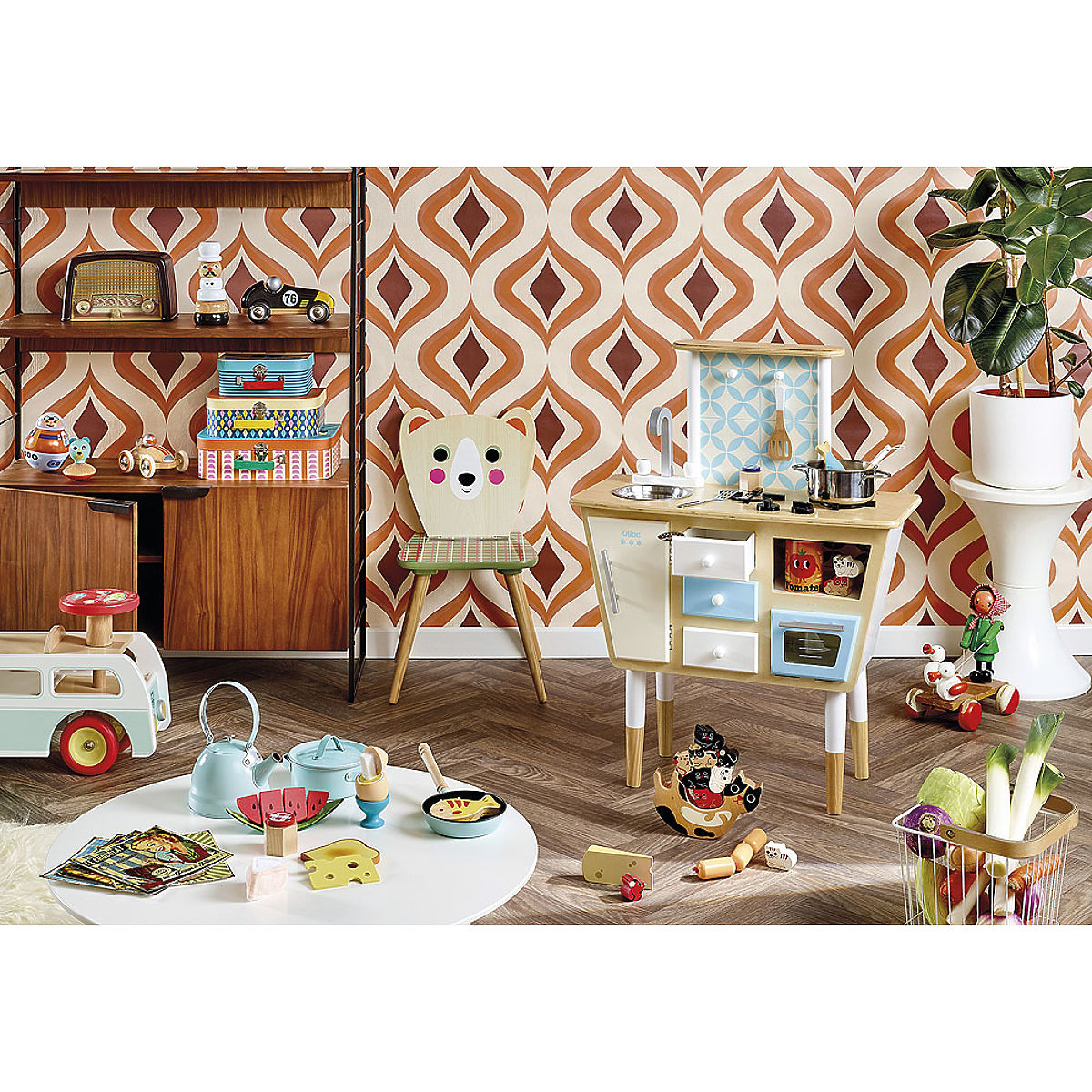 Ez az eredeti reggeliző készlet tartalmaz egy szeletelt tojást, amelybe belemárthat egy darab kenyeret, 1 szelet pirítóst, sajtot, croissant-t, 2 lekvárt, 1 csésze teát teafilterrel és szeletelt görögdinnyét. Nyam, nagyon finom reggeli! A játékok fából és filcből készültek. A készlet 12 darabból áll. Főbb jellemzők: minden konyhába alkalmas, fából készült élelmiszerek, 12 darabot tartalmaz