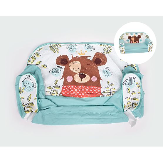 Aranyos gyerekkanapé huzat alvó mackó motívummal. Kínálatunkból különböző motívumokkal könnyedén cserélheti a gyerekszoba kanapéját.