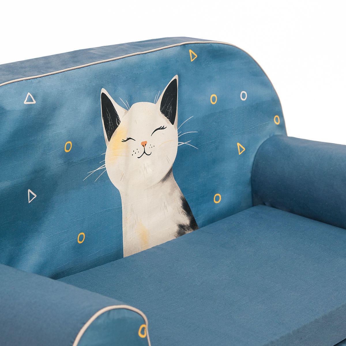 Aranyos, kényelmes és készen áll a lustálkodásra! Ez a mi gyerek kinyitható kanapénk álmos kiscica motívummal. Ez a gyönyörű kanapé puha és könnyű habból készült, a levehető huzat pedig nagyon kellemes és tartós anyagból, ami tökéletes kényelmet és biztonságot nyújt minden kis cicakedvelőnek.