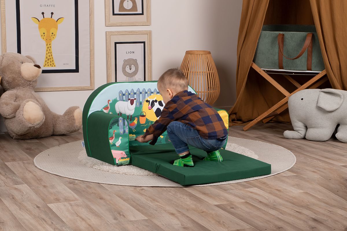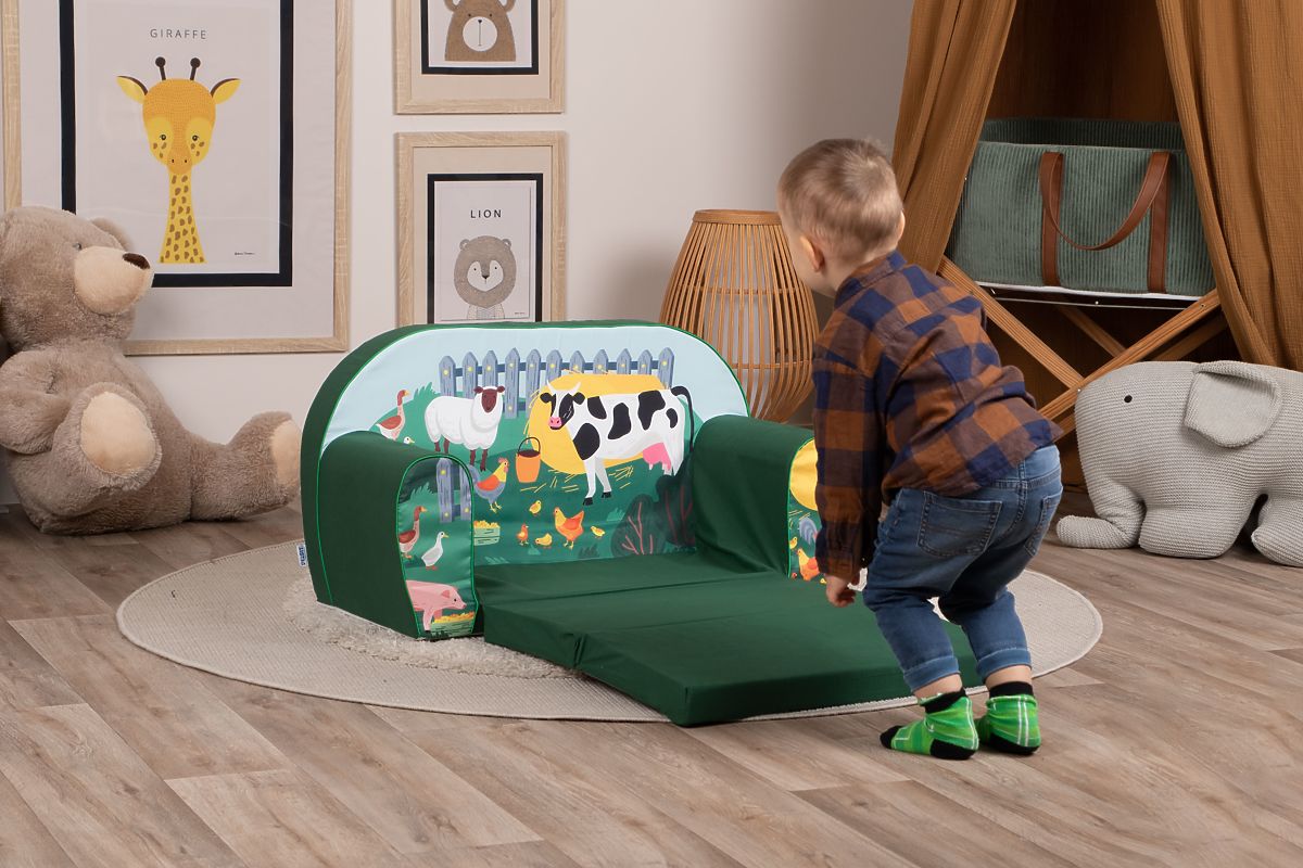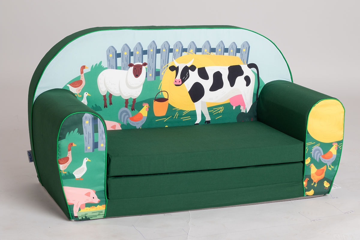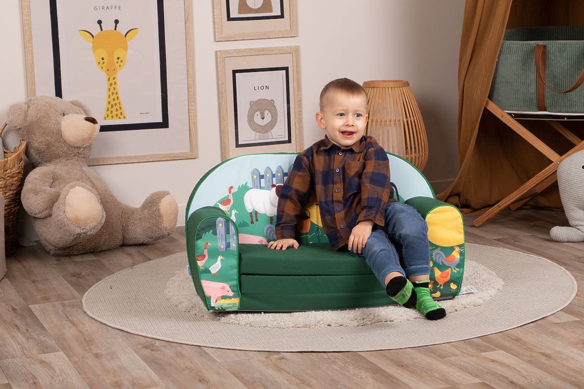 Fedezze fel a vidék varázsát ezzel az aranyos gyerek kanapéval, amelyen farm állatai láthatók!
