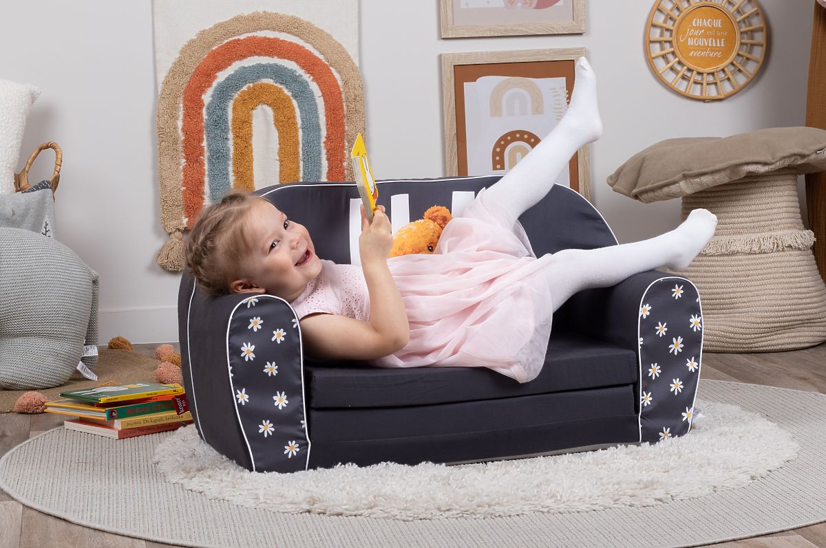 Az eltávolítható, kellemes és tartós anyagból készült huzat könnyen tisztítható, így a kanapé mindig újszerű marad. Könnyű szerkezetének köszönhetően a gyerekek könnyedén áthelyezhetik bárhová.