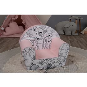 Banaby.hu » Gyerekbútor / Gyerek kanapék és fotelek / Gyerekfotelek / Gyerekszék Erdei állatok - rózsaszín-fekete-fehér