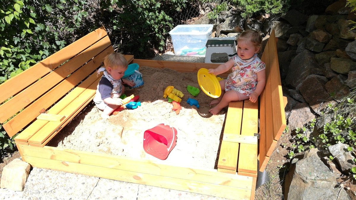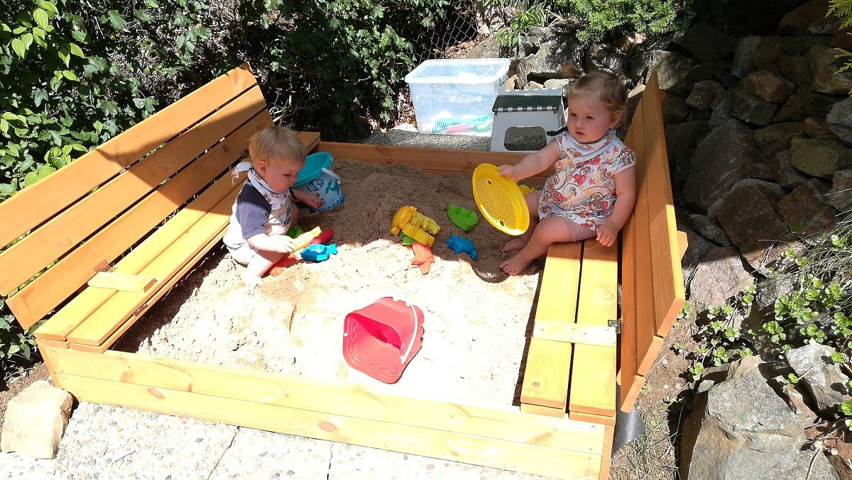 Tipp: A homok nem része a csomagnak, de könnyen beszerezhető. A homokozó homokját 25 kg-os zsákokban árulják a barkácsáruházakban.