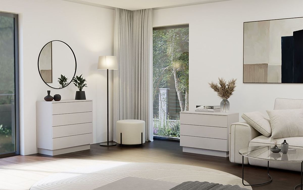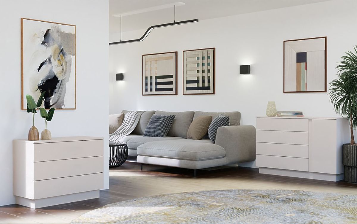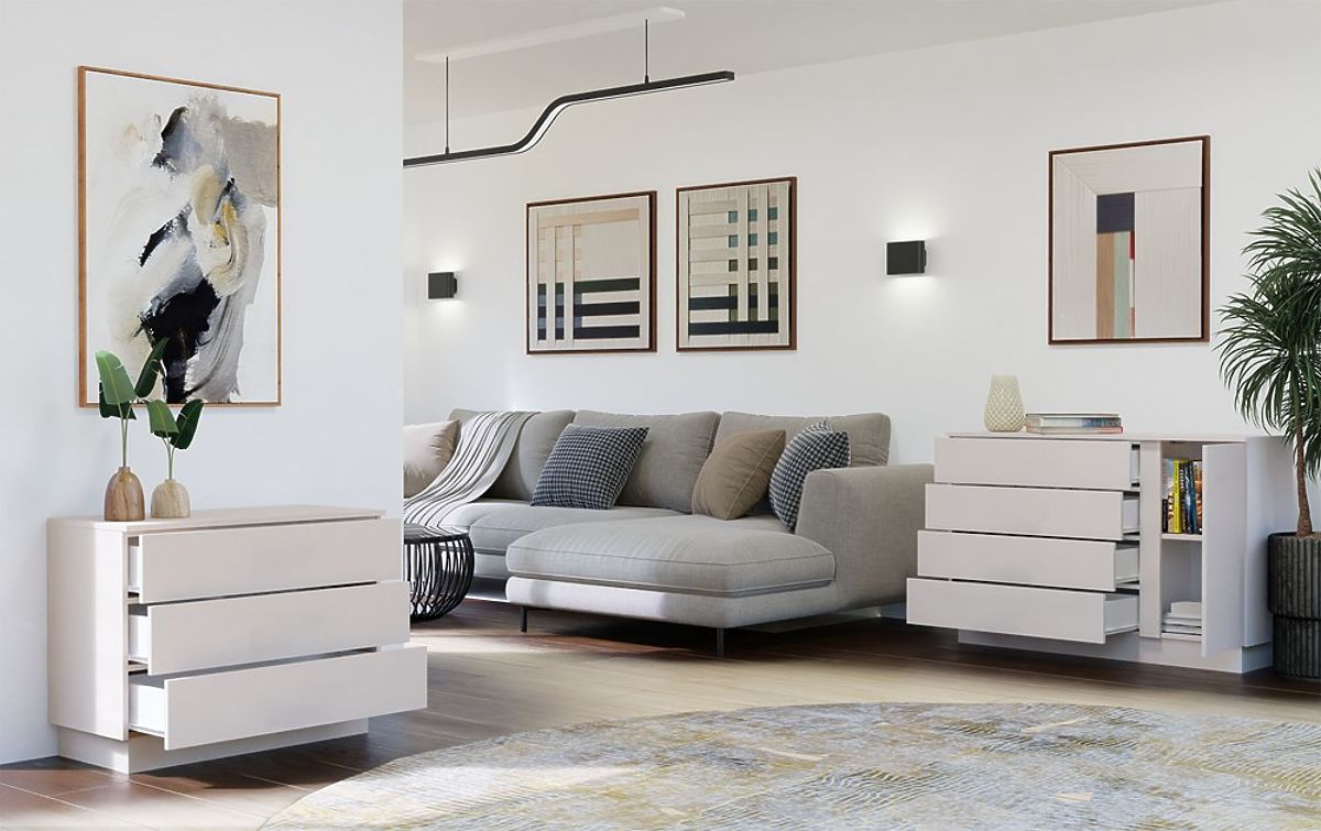 Modern komód 3 fiókkal és elegáns bézs árnyalattal. .. többet