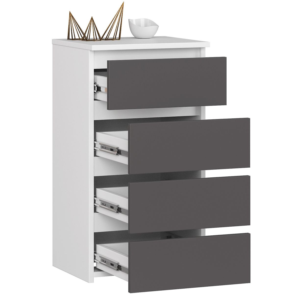 Grafitszürke komód fehér előlapokkal, 4 fiókkal, 40 cm széles. .. többet