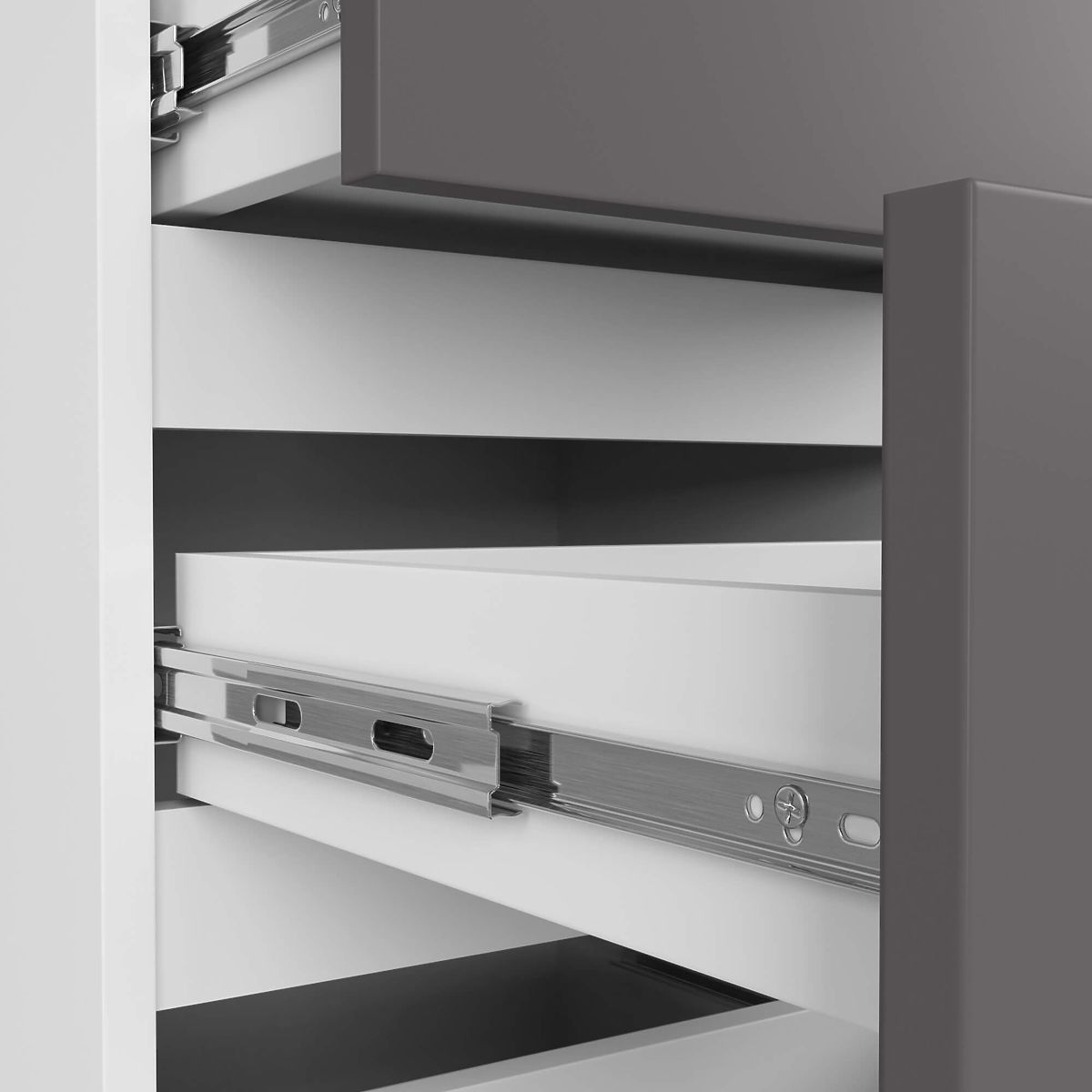 - használati kényelem - a fiókok könnyen mozognak a fém golyós csúszkákon,