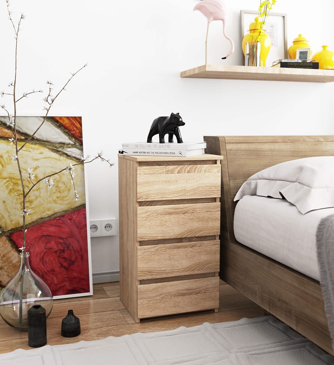 A komódok népszerű bútordarabok, amelyeket az ágy mellé helyeznek. A tetején leggyakrabban lámpa található, míg belül olyan tárgyak, amelyek megkönnyítik a pihenést és az alvást. Azoknak, akik elegáns komódot keresnek, érdemes figyelmet fordítaniuk a 40 cm-es CL4 komódra, sonoma tölgy színben. Minden hálószobában szépen mutat. Gyerekszobába is elhelyezhető.