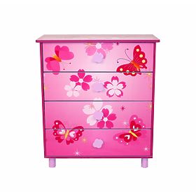 Gyönyörű gyerek komód pillangó motívum népszerű német gyártótól. Praktikus kiegészítő minden kis hercegnő birodalomba.