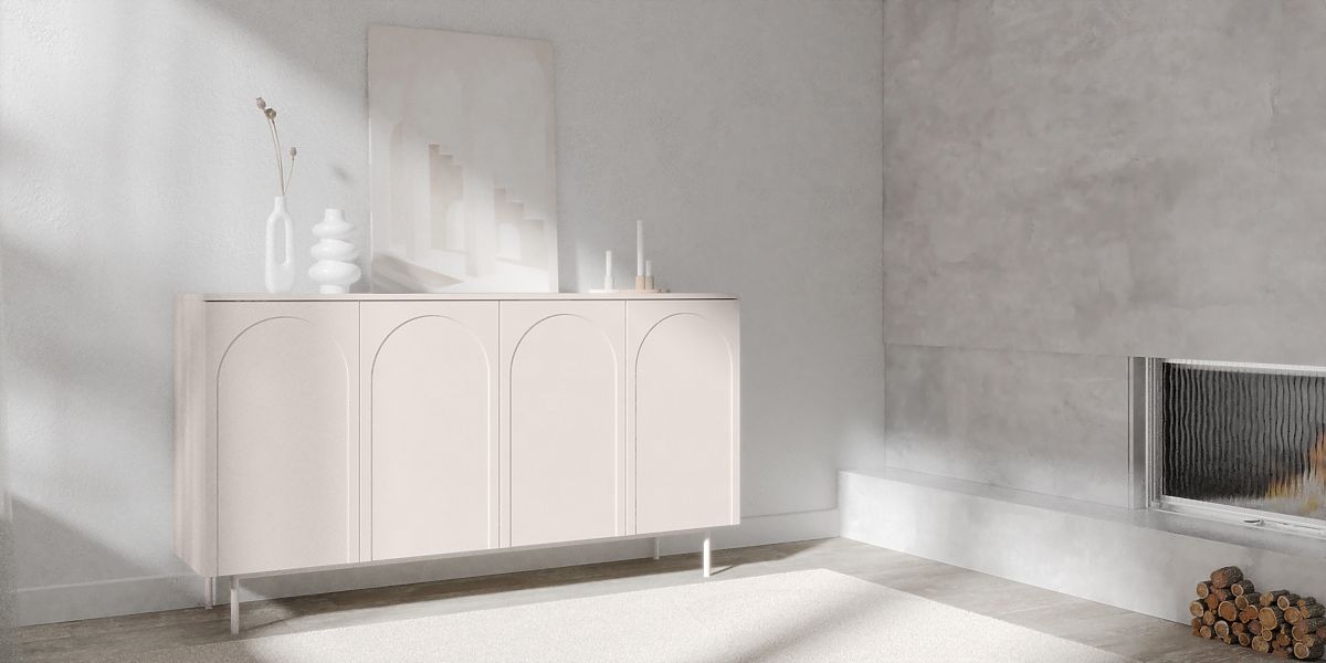 Négyajtós komód dekoratív, íves marású előlapokkal. .. többet