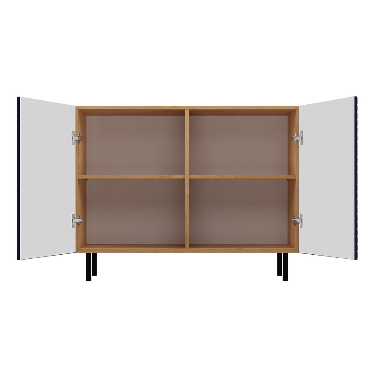 Nagy előnye a 13 cm magas kerek fém lábak, amelyek vizuális könnyedséget kölcsönöznek a teljes szerkezetnek és stabilitást biztosítanak a komódnak.