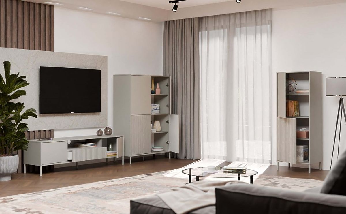 SZÍN:A KAMARO 4DK vitrin modern és funkcionális bútor, amely kiválóan illeszkedik a nappaliba, vendégszobába, hálószobába vagy dolgozószobába. A szélesebb méret (103,5 cm) még több tárolóhelyet kínál, miközben megőrzi elegáns és loft jellegét. A sima és bordázott ajtók kombinációja stílusos kontrasztot ad, a TIP-ON rendszer pedig kényelmes fogantyú nélküli nyitást tesz lehetővé.