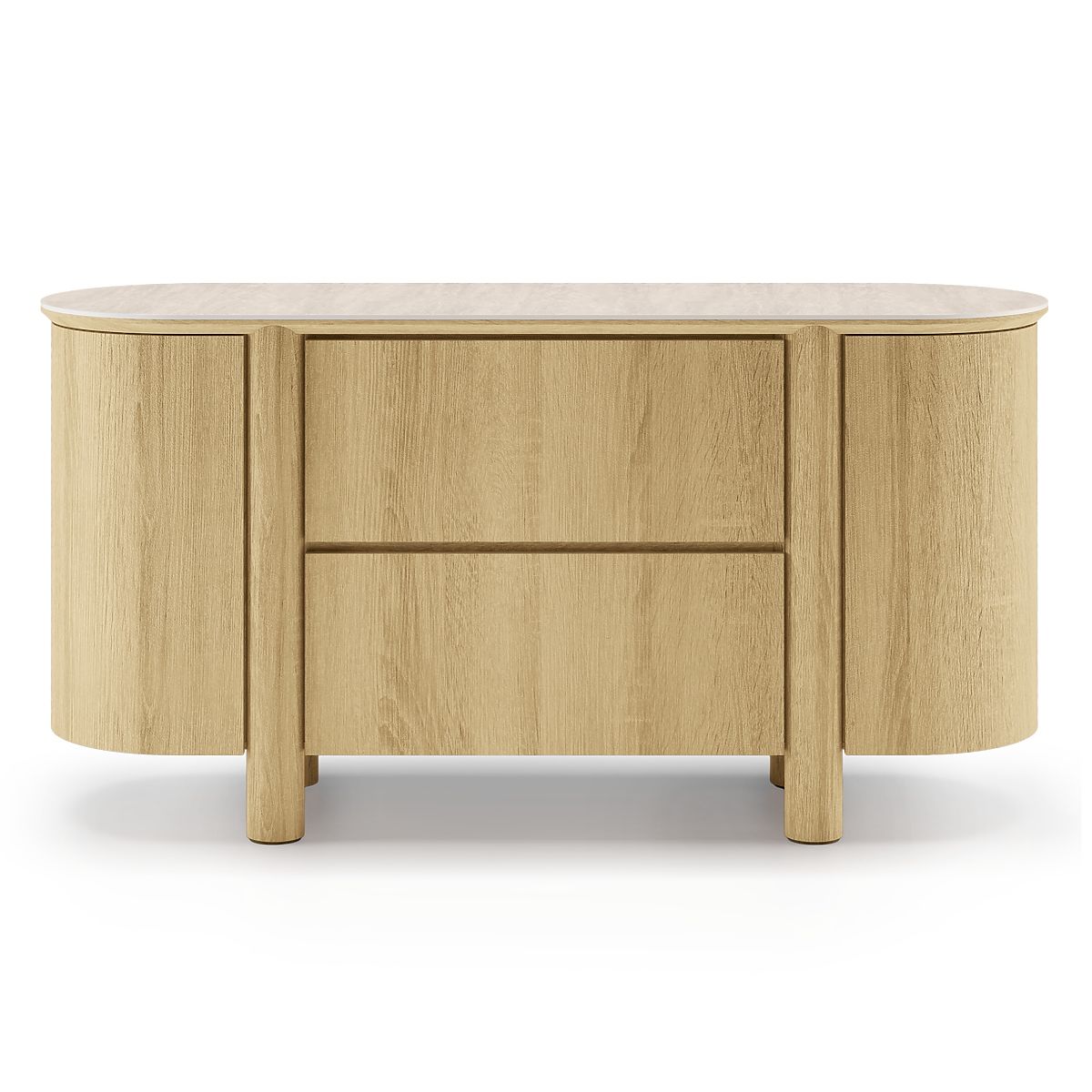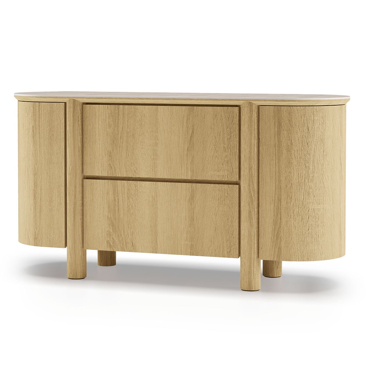 Lekerekített komód természetes tölgy és travertin dekorral. .. többet