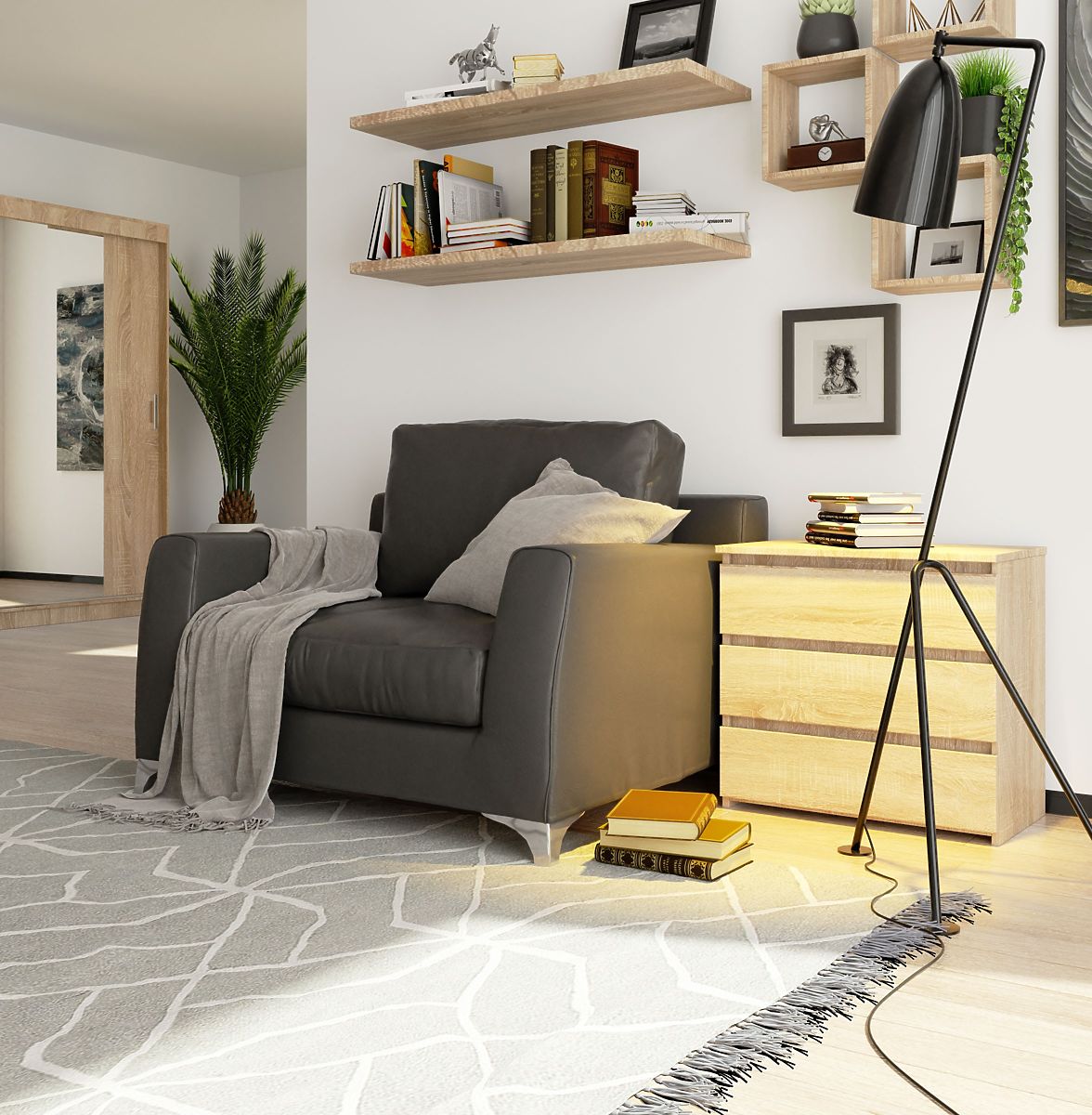 Elegáns, funkcionális és modern - ilyen a CL3 komód három fiókkal, amely az Akord bútor webáruház kínálatában található. Ez a bútordarab elegáns és divatos sonoma tölgy színben nemcsak a hálószobába vagy a nappaliba illik, hanem az előszobába és irodai helyiségekbe is.