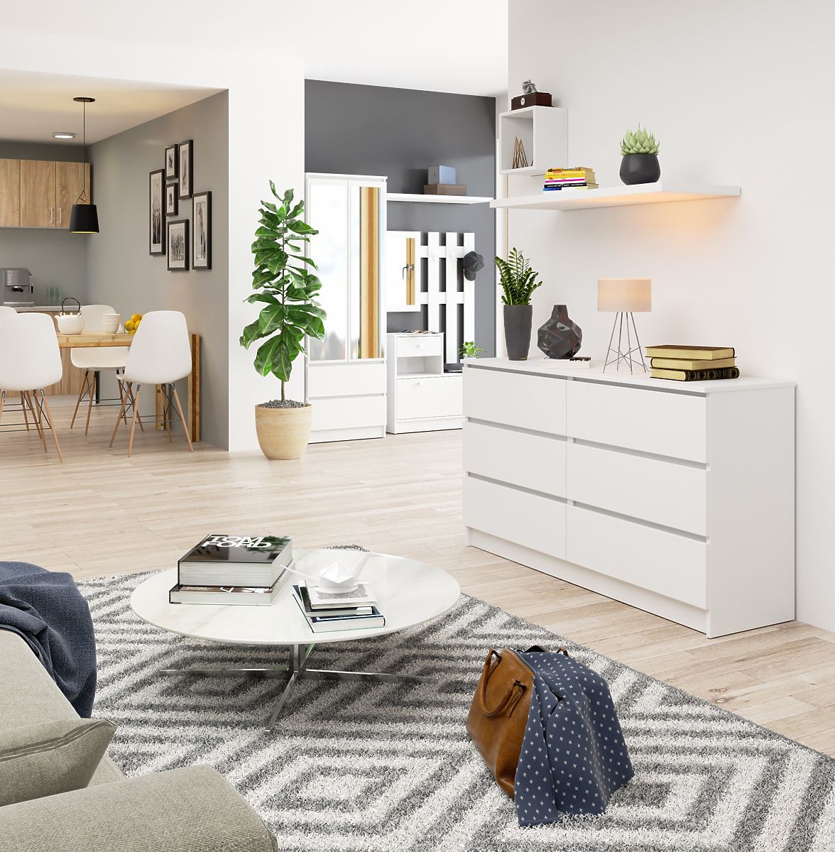 Fehér, 6 fiókos komód modern és skandináv dizájnhoz. .. többet