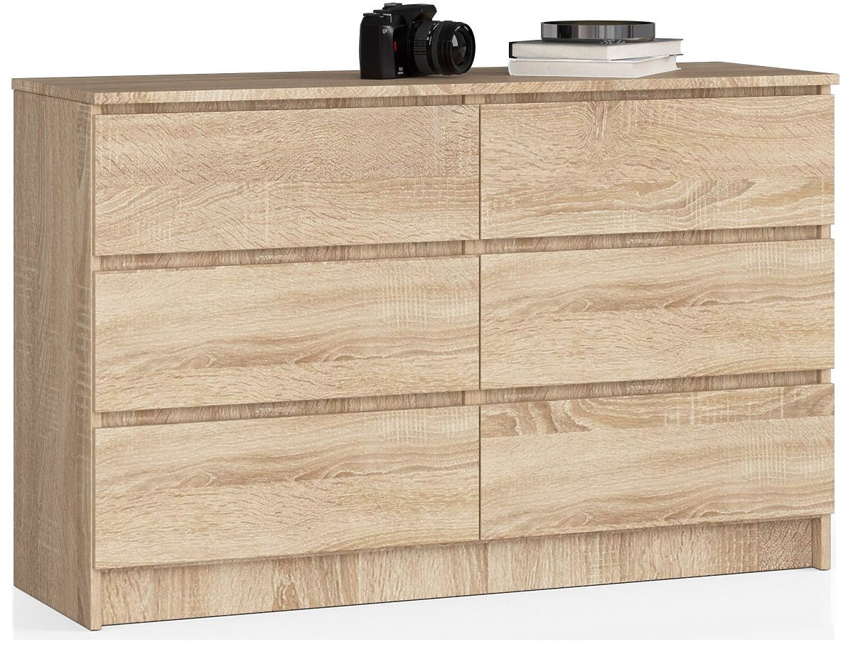 Ha rendkívül tágas, de elegáns bútordarabot keres, a K120 komód kínálatunkból kiváló megoldás! Magas minőségű laminált lapból készült, és akár 6 fiókkal is rendelkezik, így ideális választás hálószobába, nappaliba, előszobába vagy irodába. Elegáns megjelenését nemcsak ízléses és funkcionális kialakításának, hanem a divatos tölgy sonoma színnek is köszönheti.