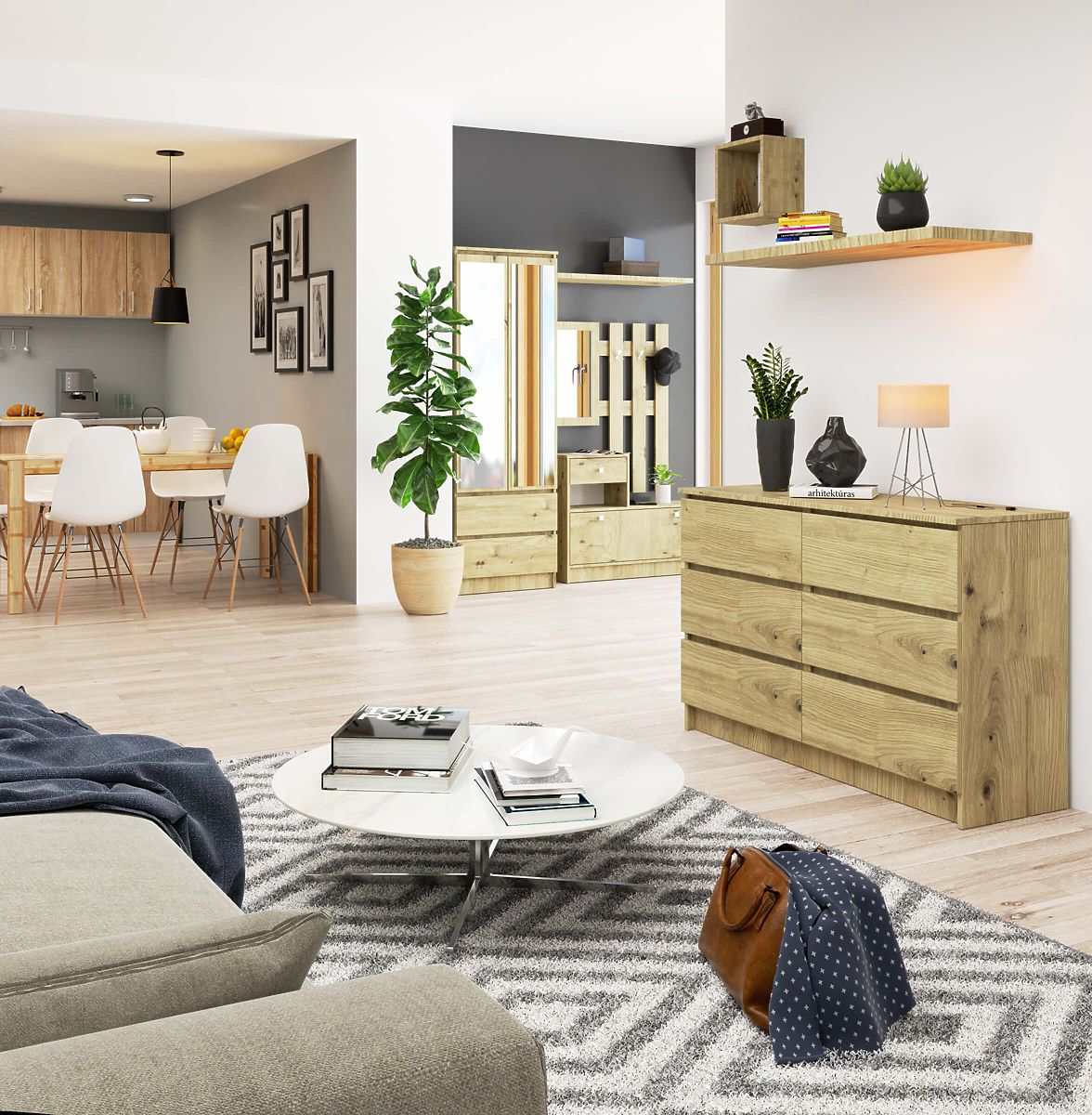 Kopásálló laminált komód 6 fiókkal, Tölgy Artisan színben. .. többet