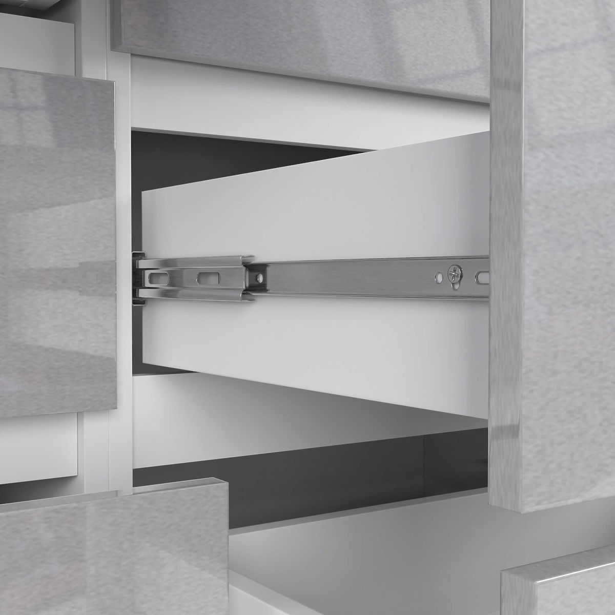 - A fiókok fém golyós csúszkákon mozognak