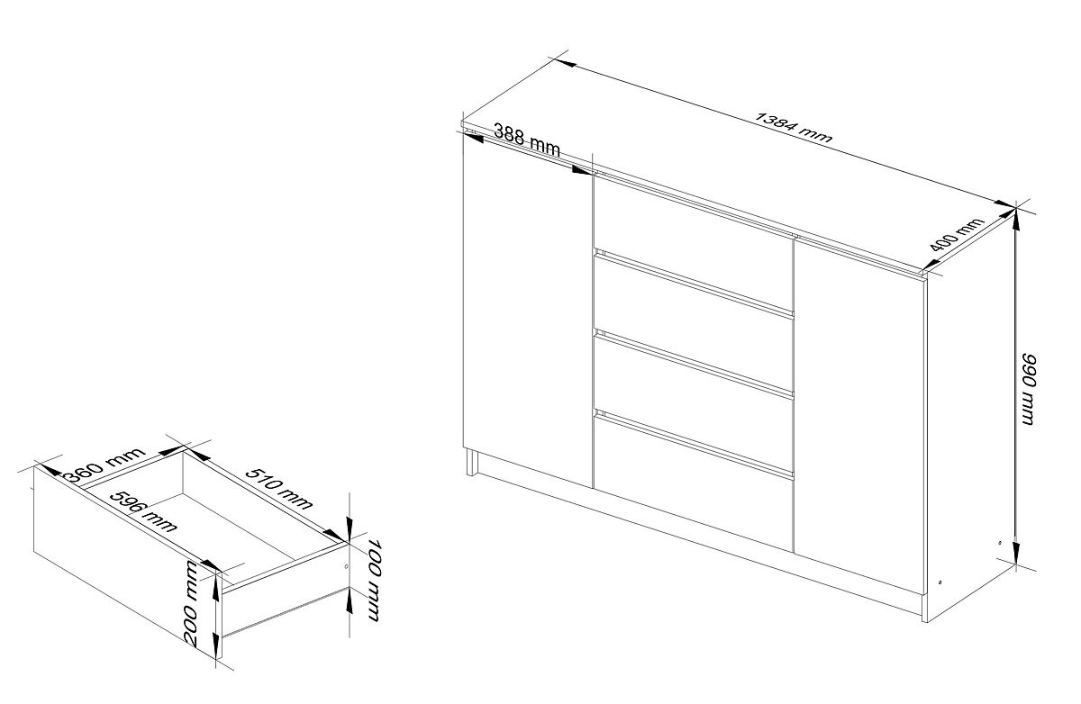 KOMÓD K140 2 AJTÓ 4 FIÓK