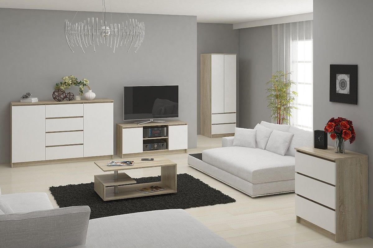 K140 komód 4 fiókkal és 2 ajtóval, Sonoma tölgy és fehér színben. .. többet