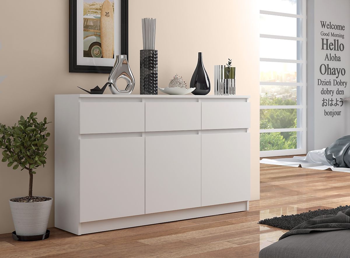 A komód önálló összeszerelésre készült. Minden rendeléshez mellékelünk egy útmutatót, amely egyszerűen és áttekinthetően magyarázza el, hogyan kell összeszerelni a bútort. Bár a komód magas ellenállóságot és tartósságot mutat, 24 hónapos garanciát biztosítunk rá. Rendeléskor biztos lehet benne, hogy a termék tökéletes állapotban érkezik meg. A komód egyszerű formájának köszönhetően könnyen alkalmazkodik különböző belső elrendezésekhez. Kiválóan alkalmas nappaliba, folyosóra vagy hálószobába. Tágas és funkcionális. A tetején különféle dekoratív tárgyakat helyezhet el, így a bútor karaktert kap. A komód időtlen elegancia szellemében készült, ezért univerzális. Előnye a gondos kidolgozás és a magas sérülésállóság. Magassága 99 cm, hossza 138 cm. A komód összesen 65 kg súlyú. Színe nemes fehér.