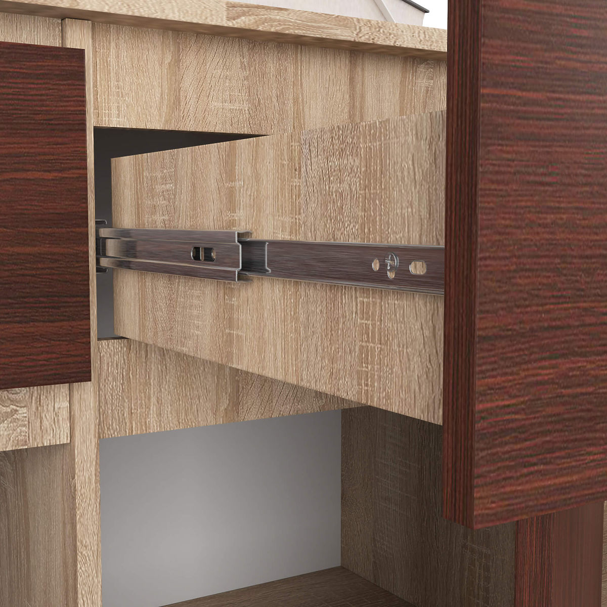 - A fiókok fém golyós síneken mozognak