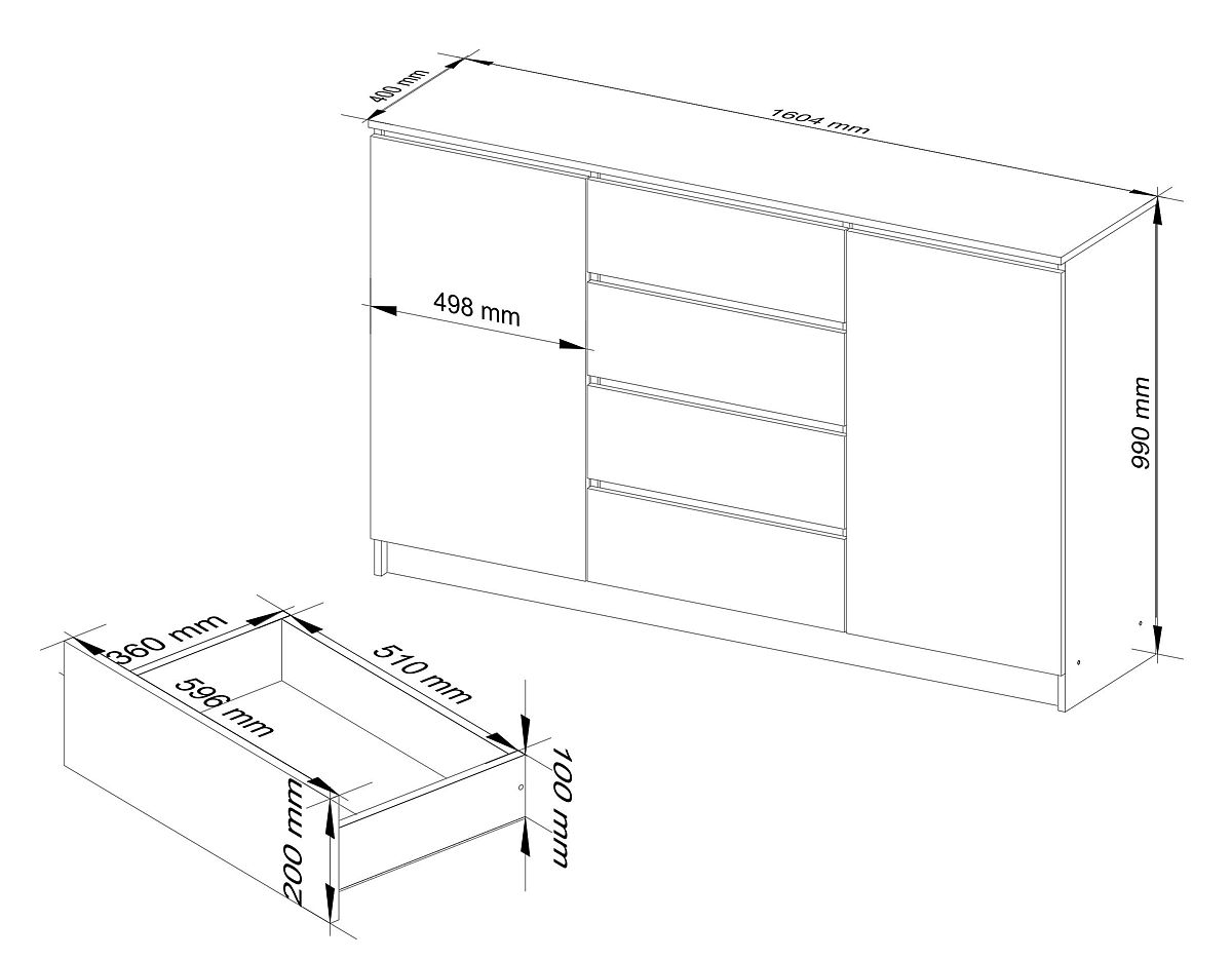 KOMÓD K160 2 AJTÓ 4 FIÓK Nagy és tágas komód modern dizájnnal.