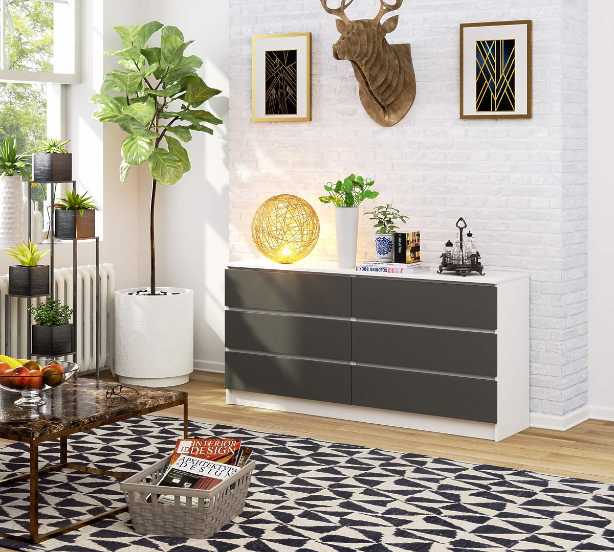 Modern komód fehér és grafit szürke színben, hat tágas fiókkal. .. többet