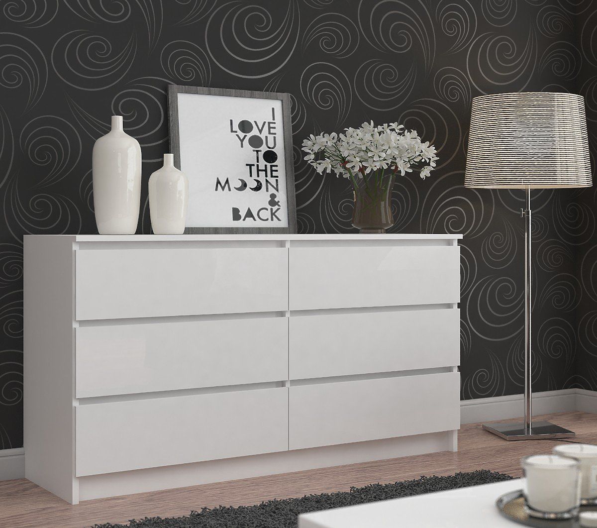 Klasszikusan szép fehér komód, amely számos érdekes ajánlatunk egyike az internetes áruházunkban. A bútor hat tágas fiókból áll. Mindegyik könnyedén elnyeli a szükséges tárgyakat az adott helyiségben. A komód jól mutat a nappaliban, de a gyerek- vagy ifjúsági szobában is. Továbbá használható hálószobában, vendégszobában, étkezőben, előszobában, valamint nem lakó jellegű helyiségekben - például szállodákban vagy irodákban.