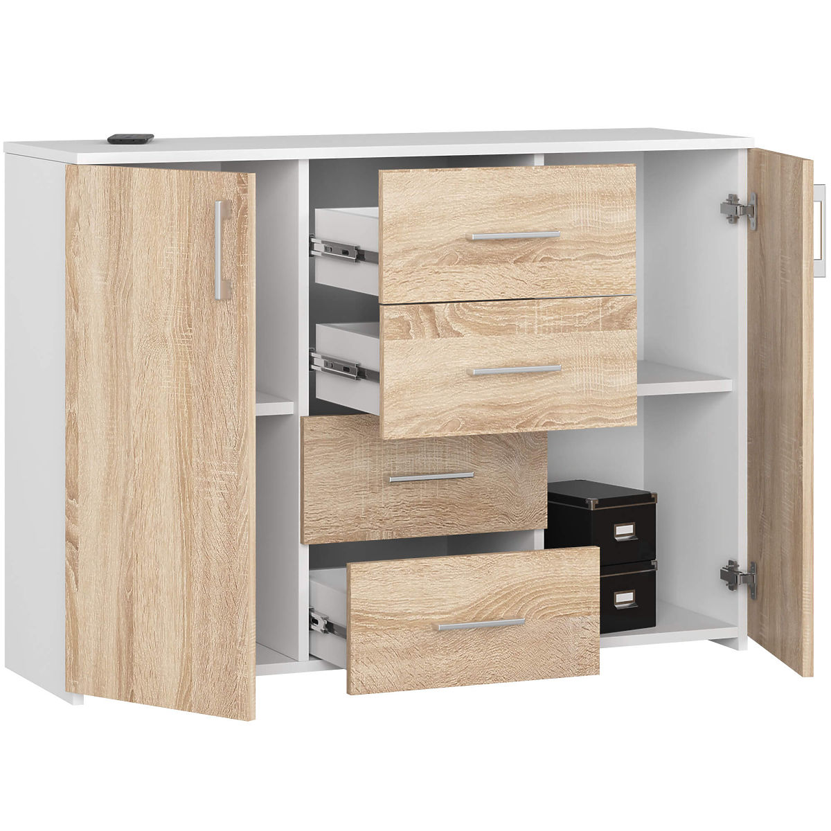 Kopásálló laminált komód fehér és Sonoma tölgy színben. .. többet
